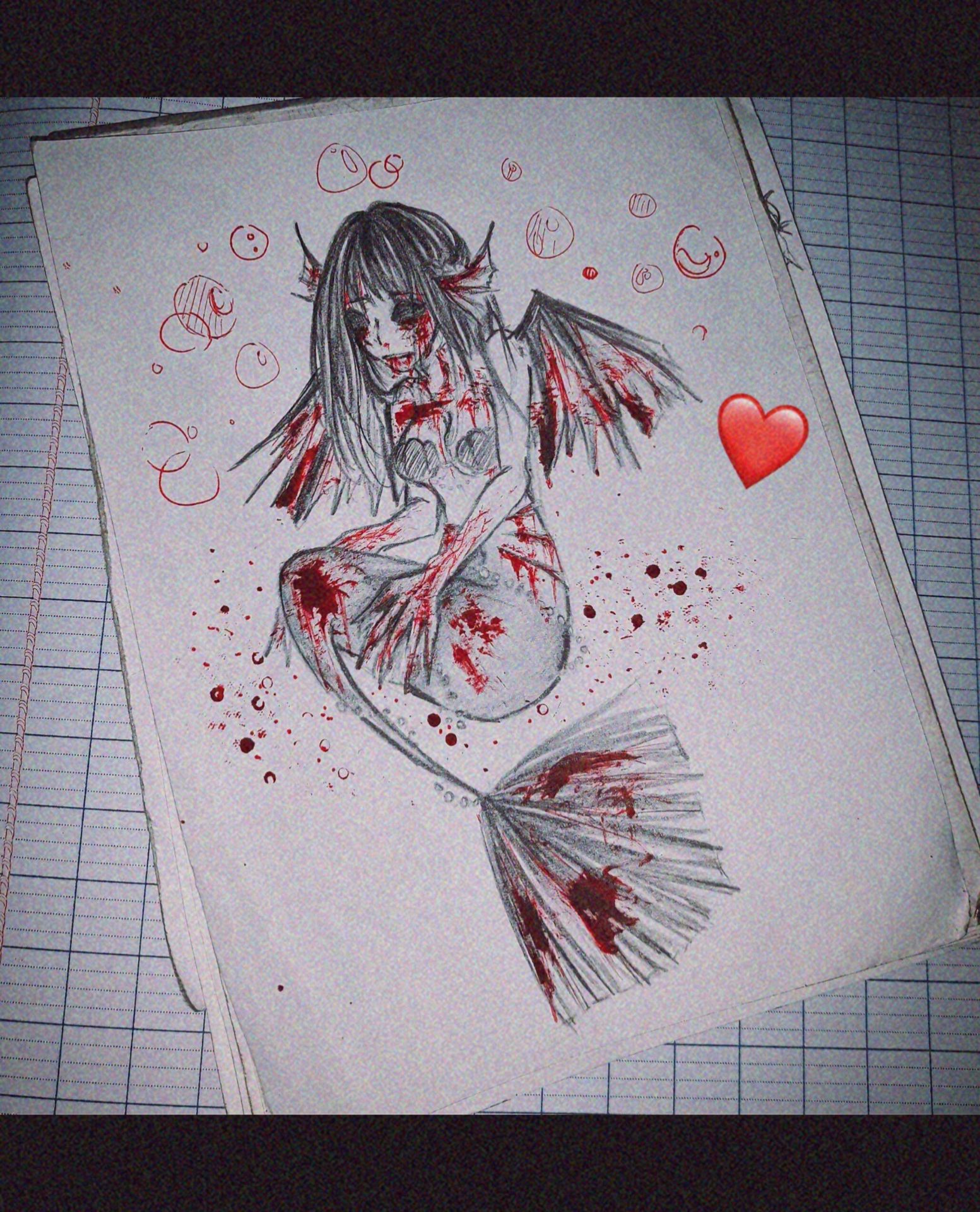 Do vô tình nhìn thấy bạn Bò ngồi vẽ bậy bạ máu me các thứ nên bạn Yá nổi hứng vẽ Creepy =))))