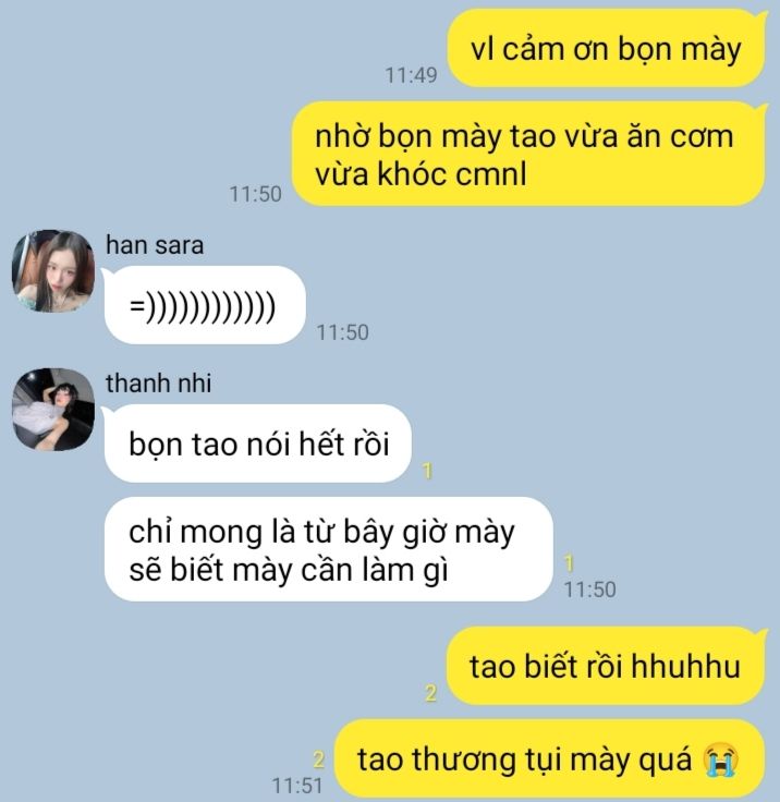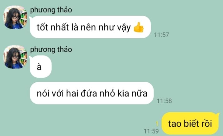 "em biết rồi, em sẽ thẳng thắn, cảm ơn lời khuyên của chị, em thấy việc này nhỏ vậy mà cũng suy nghĩ quá lên được, cũng không biết bản thân bị gì nữa."- nó cười , tay vuốt lại tóc.