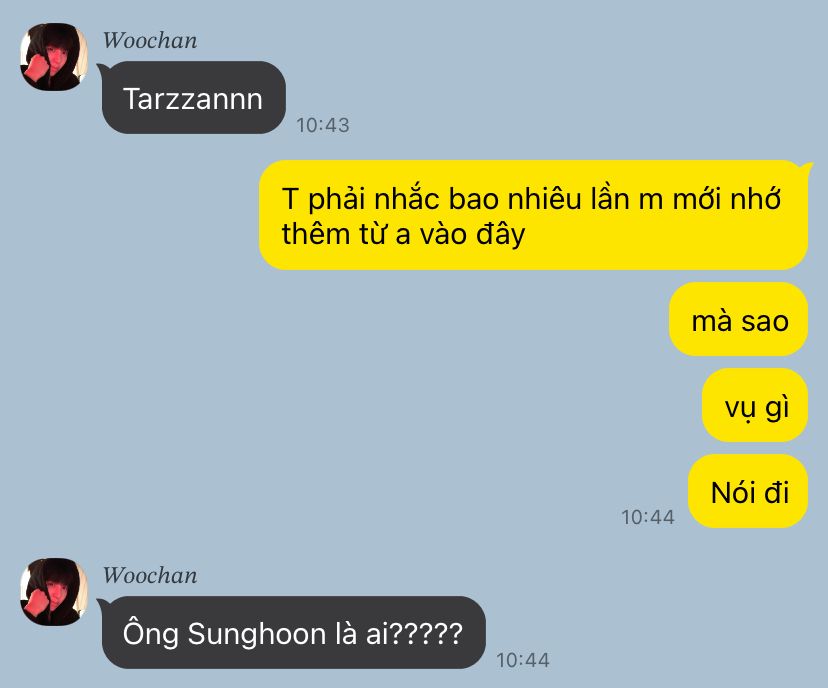 -Ê Yuna a nhớ e học cũng giỏi mà , sao hôm nay bài nào e cũng hỏi Woochan v ?
