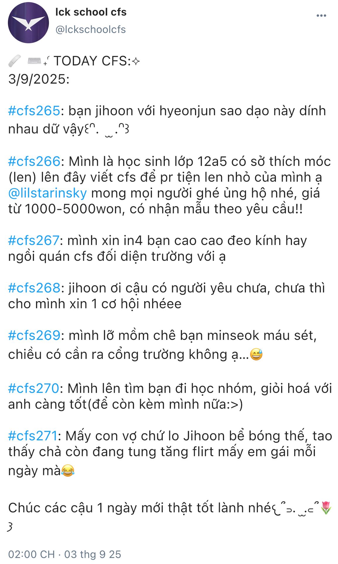 ⌗ !! ꒰ LCK SCHOOL'S CFS ꒱ 🪽