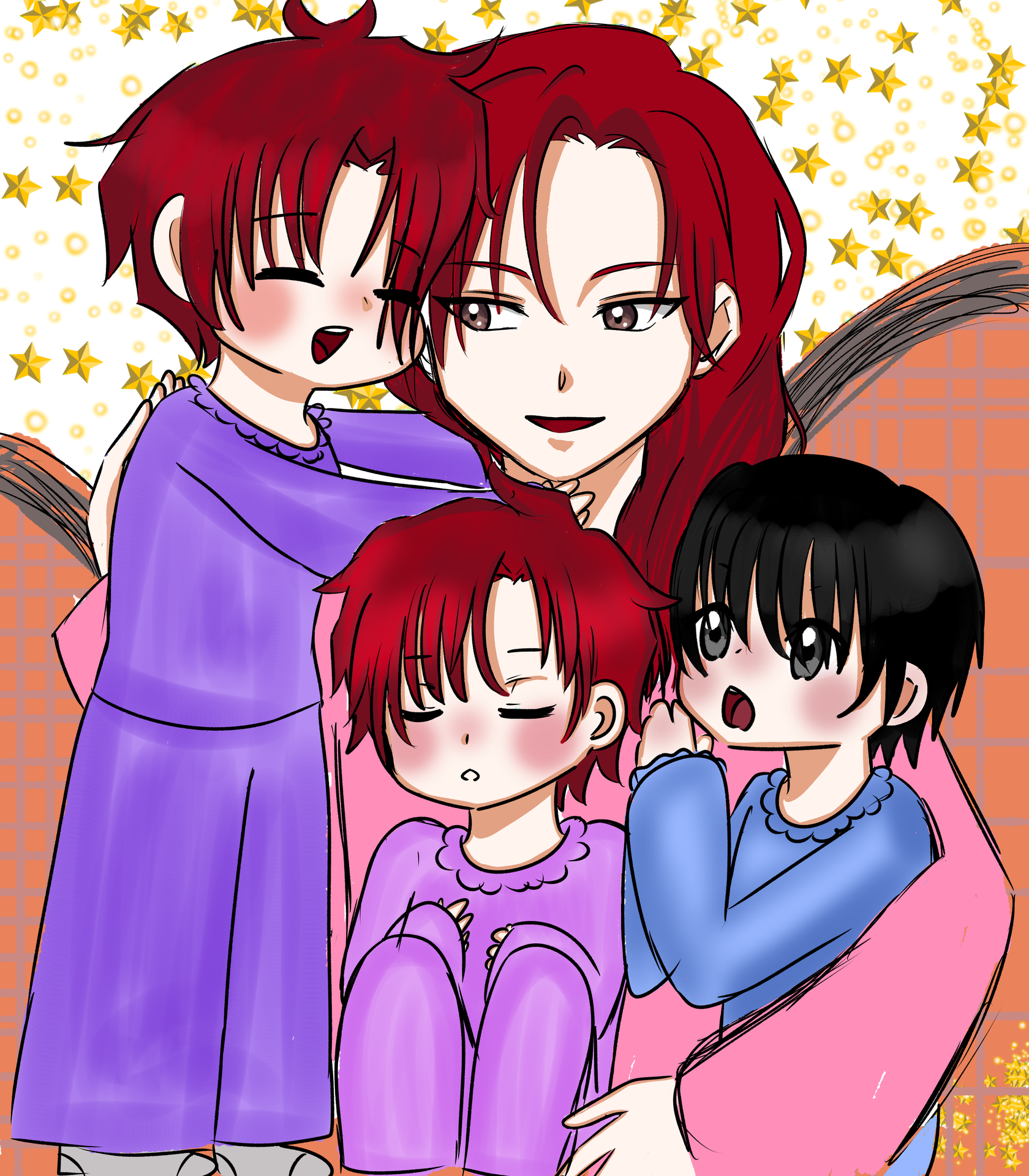 "Das wight. We wiw pwotecc mommy," Soleil followed as he stood and hugged him too. (Trans: That's right. We will protect mommy.)