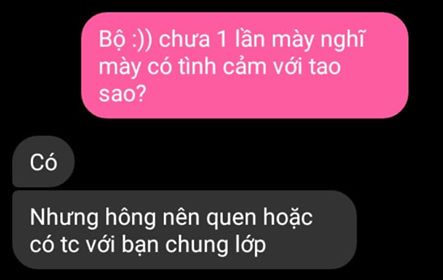 Thật, lúc đó mình khá ích kỷ luôn. Mình không định tỏ tình qua vài dòng tin nhắn như vậy đâu nhưng cứ nghĩ nếu không nói thì chắc sẽ không còn cơ hội nào nữa, mình nghĩ thế...