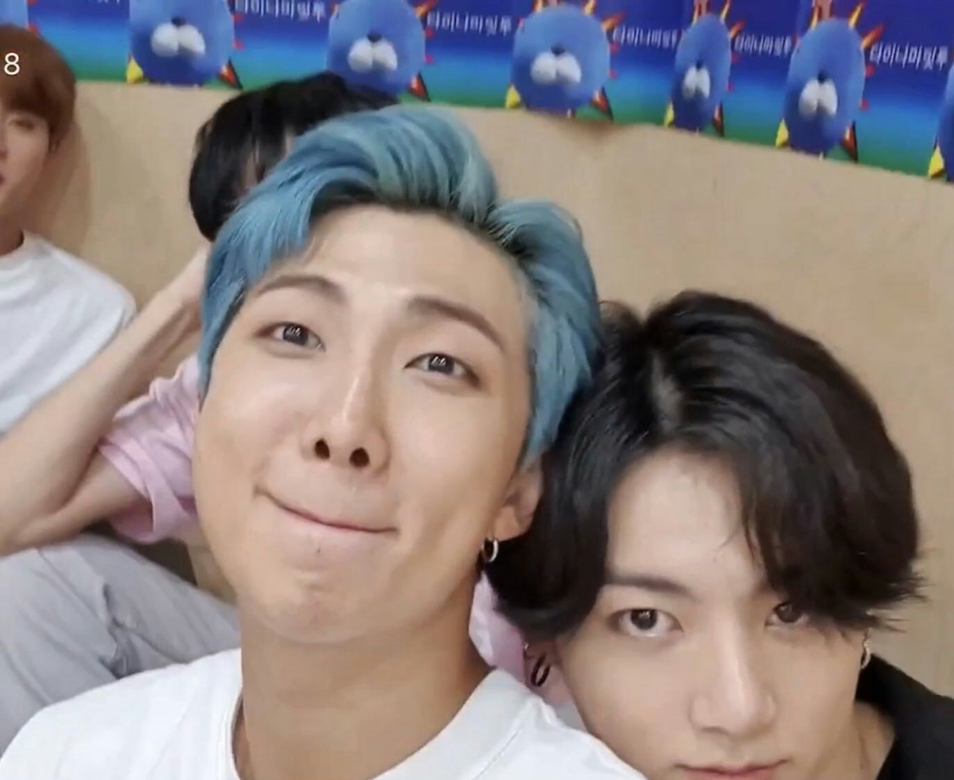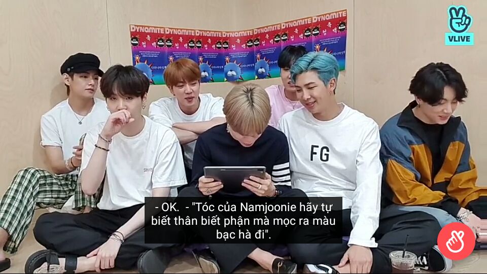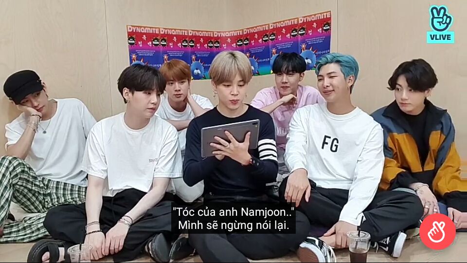 poor tae, anh nói là tóc namjoon không hẳn là xanh dương đâu mà là xanh lá, cơ mà không có ai để ý đến :< tae pùn mà tae hổng nói ớ :< những lần trước thì tae không có tham gia, đến lần này có lời muốn nói thì lại không ai để ý, tứk á.