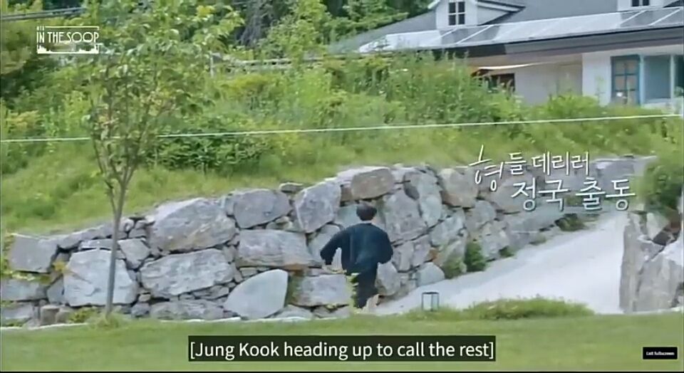 jungkook chạy đi báo tin rằng anh namjoon muốn bangtan tập hợp ở nhà chính. đấy, người yêu nhau đấy, người này nói người kia đi báo tin.