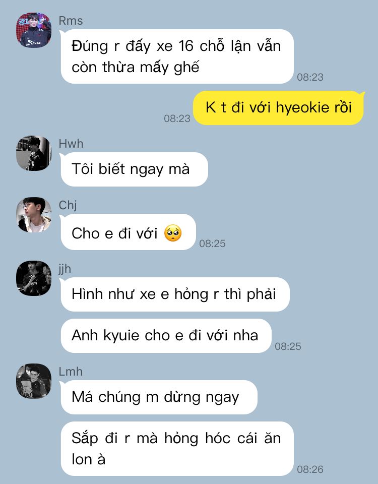 Chj: Đi kiếm anh kyuie với hyeokie lập nhóm đi mọi người.