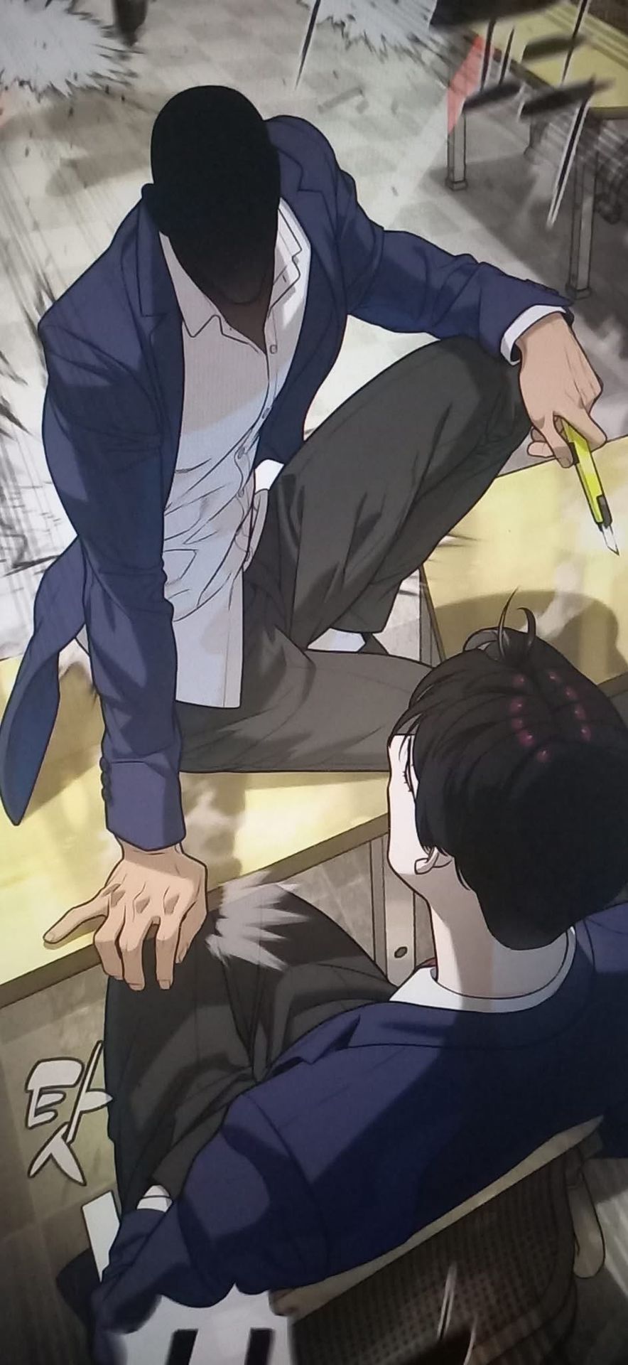 Hắn thả tay gã ra, liếm môi, hơi dịch người ra xa. Ngón tay hắn móc lấy cạp quần Raphael, đầu ngón tay ấn lên những sợi gân tụ lại ở bụng dưới, thì thầm bên tai Raphael: "Sếp ơi, ngài cần tôi giúp không?"