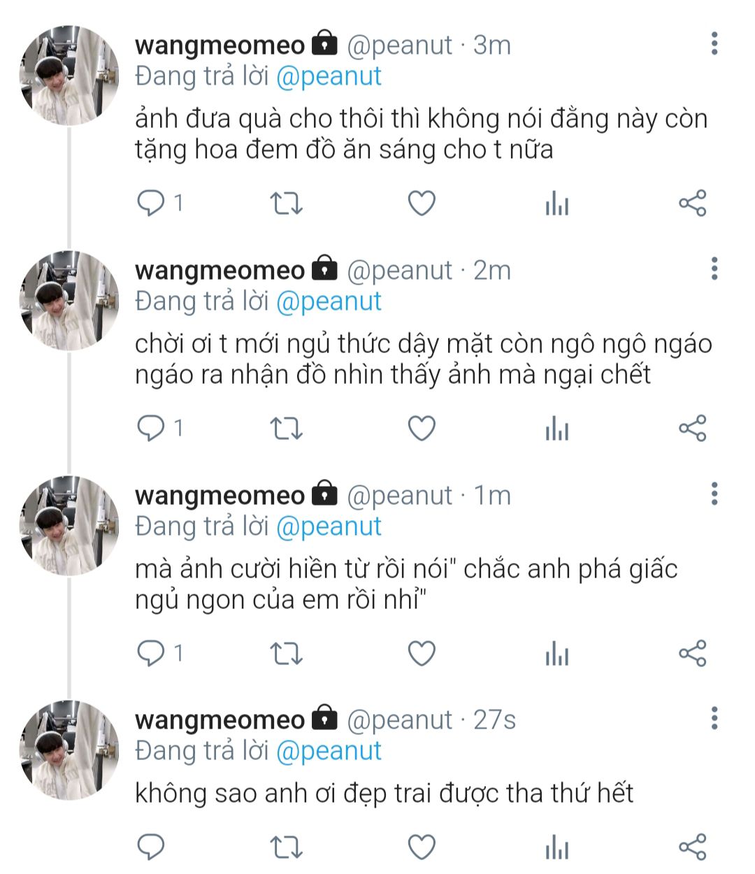 " anh wangho sao anh về trễ vậy ạ"