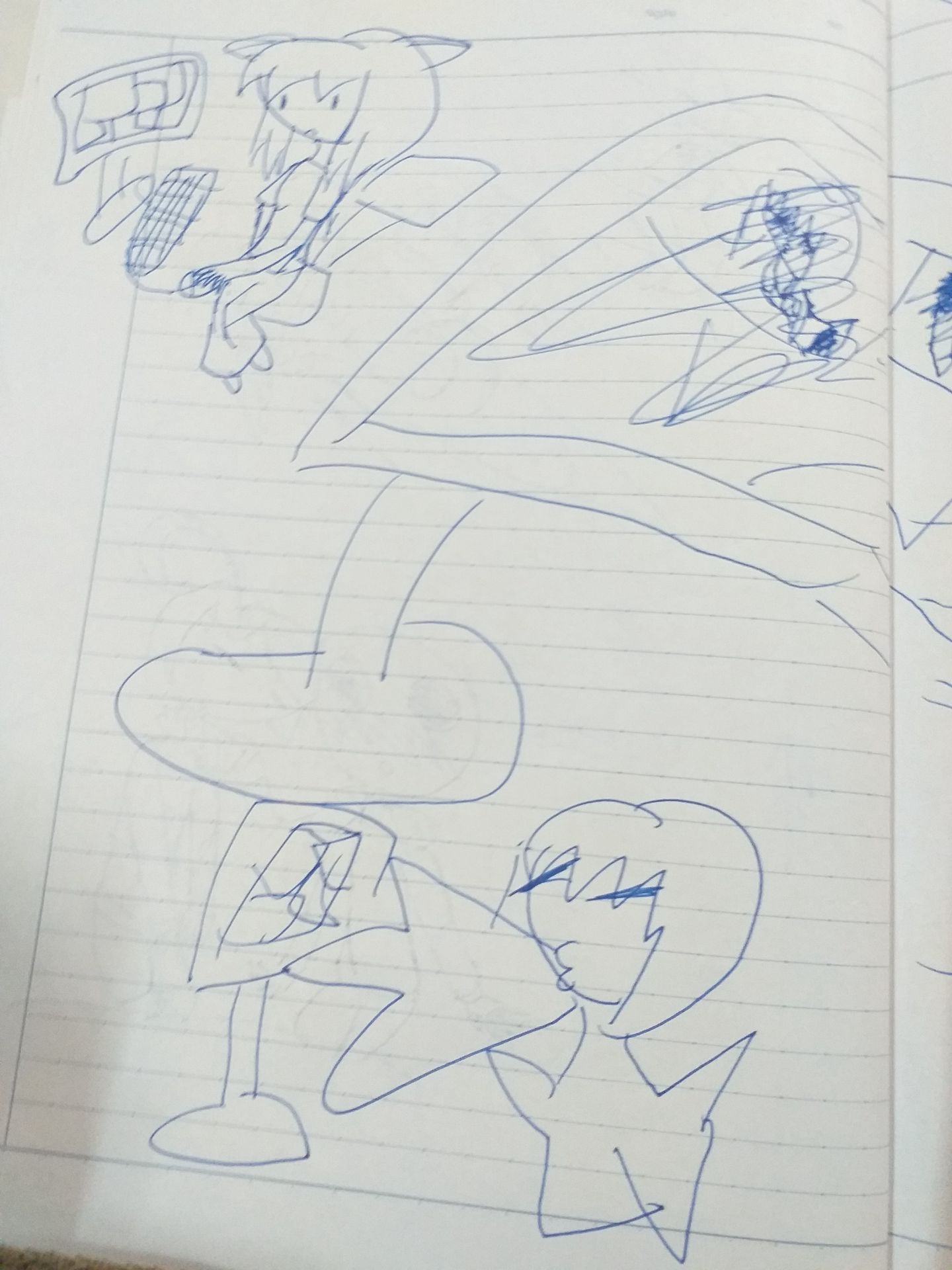 Em : 'Chị ơi, Bendy thế nào ? Dễ thương ko ?' *ý định hỏi để vẽ*