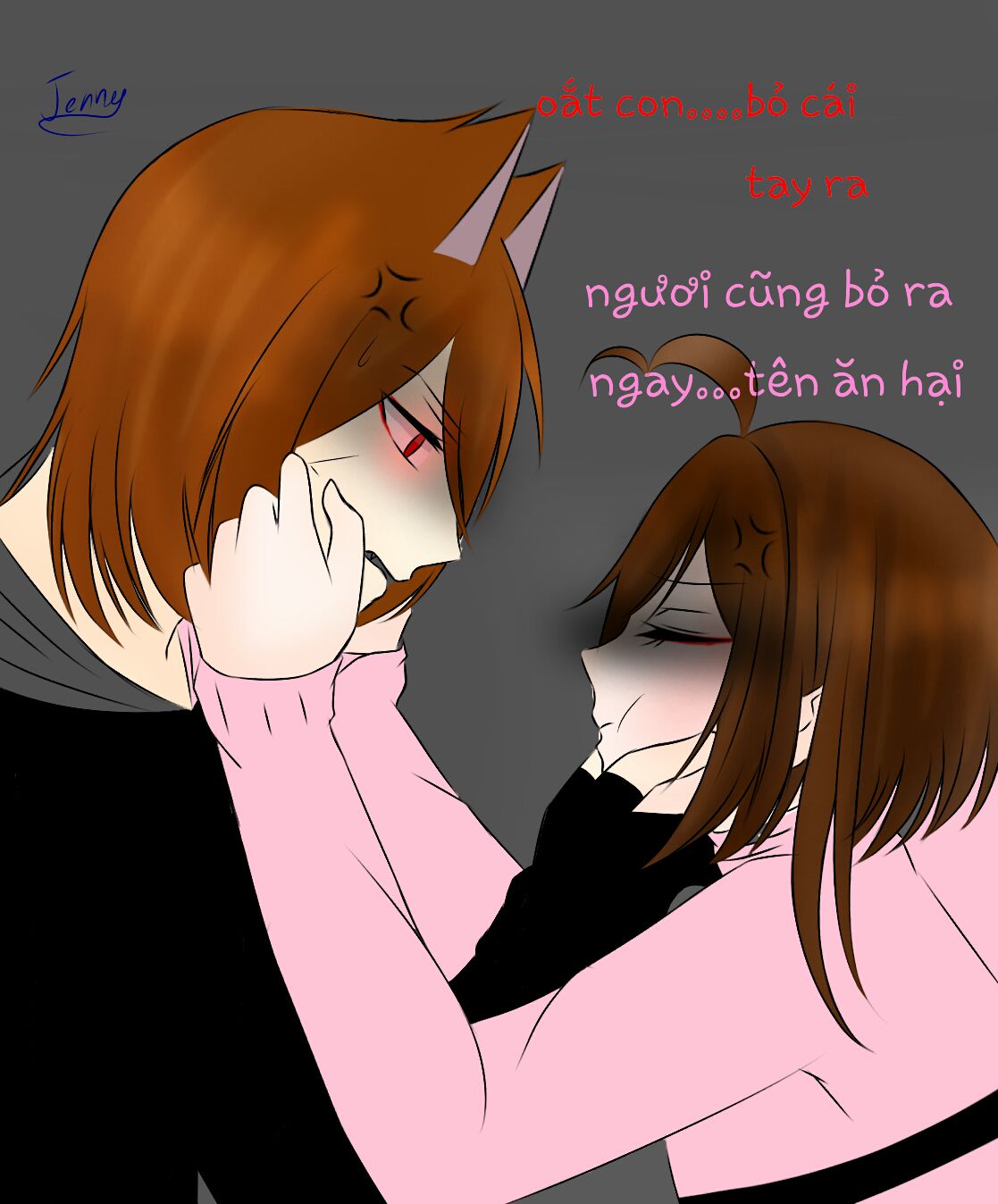 Jen : anh em như chó với mèo , khổ toi quá mà thôi...toi quen r :')...