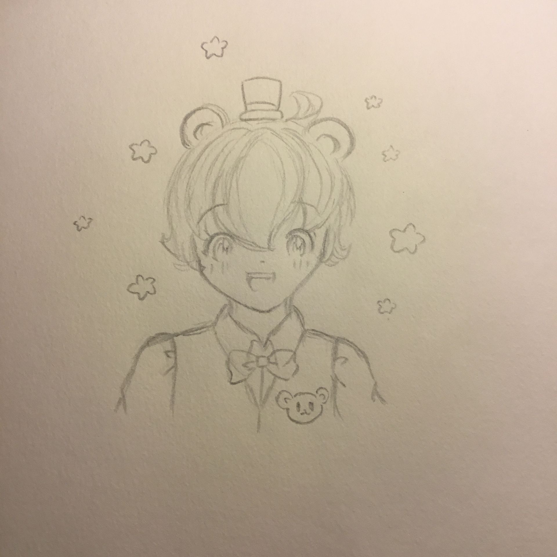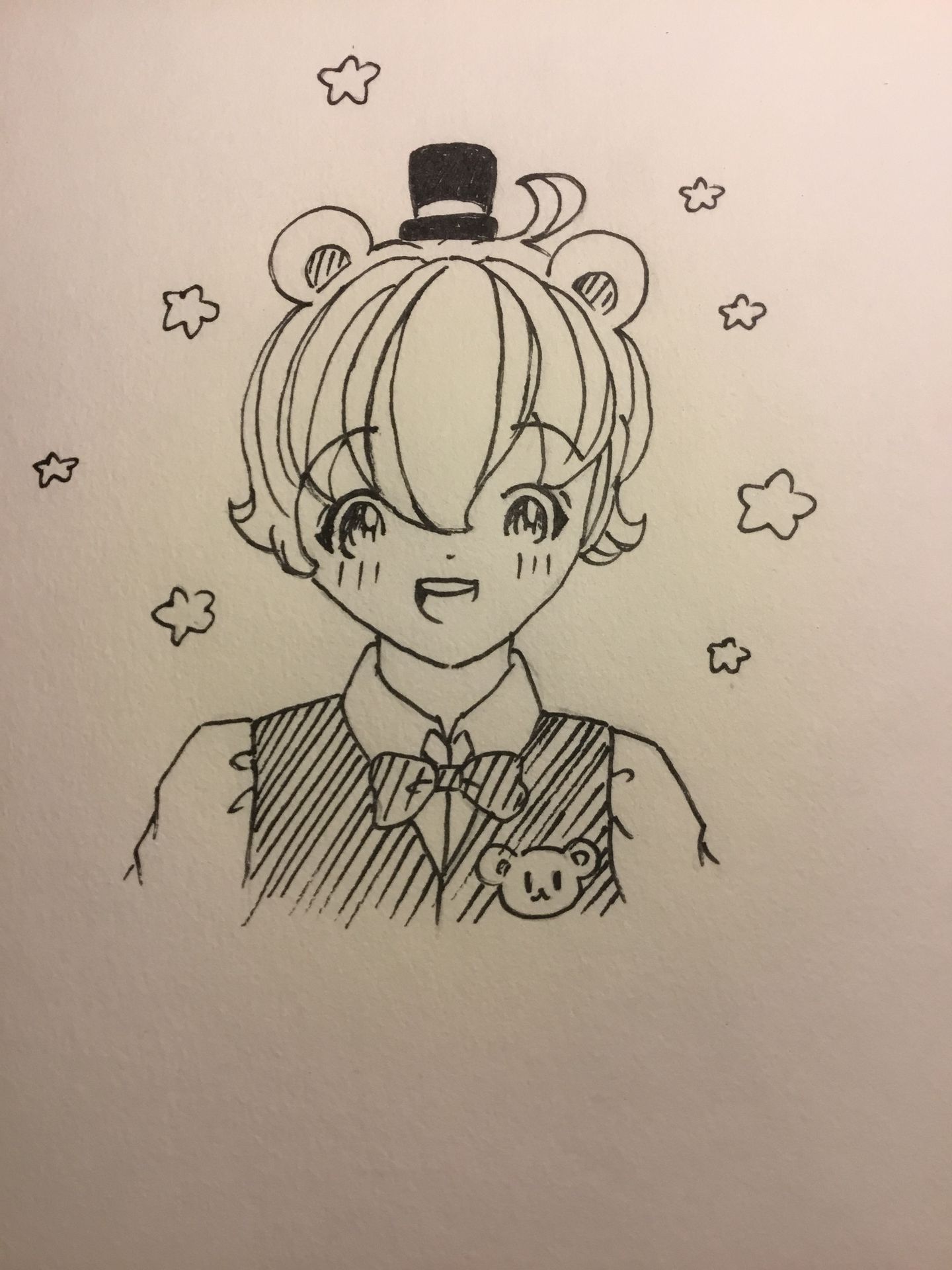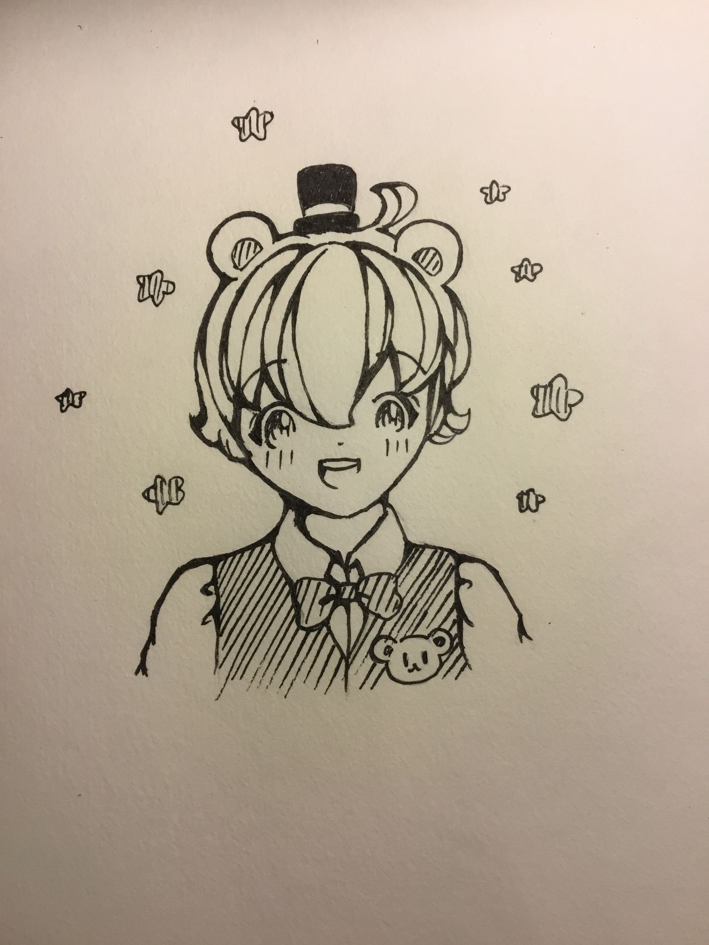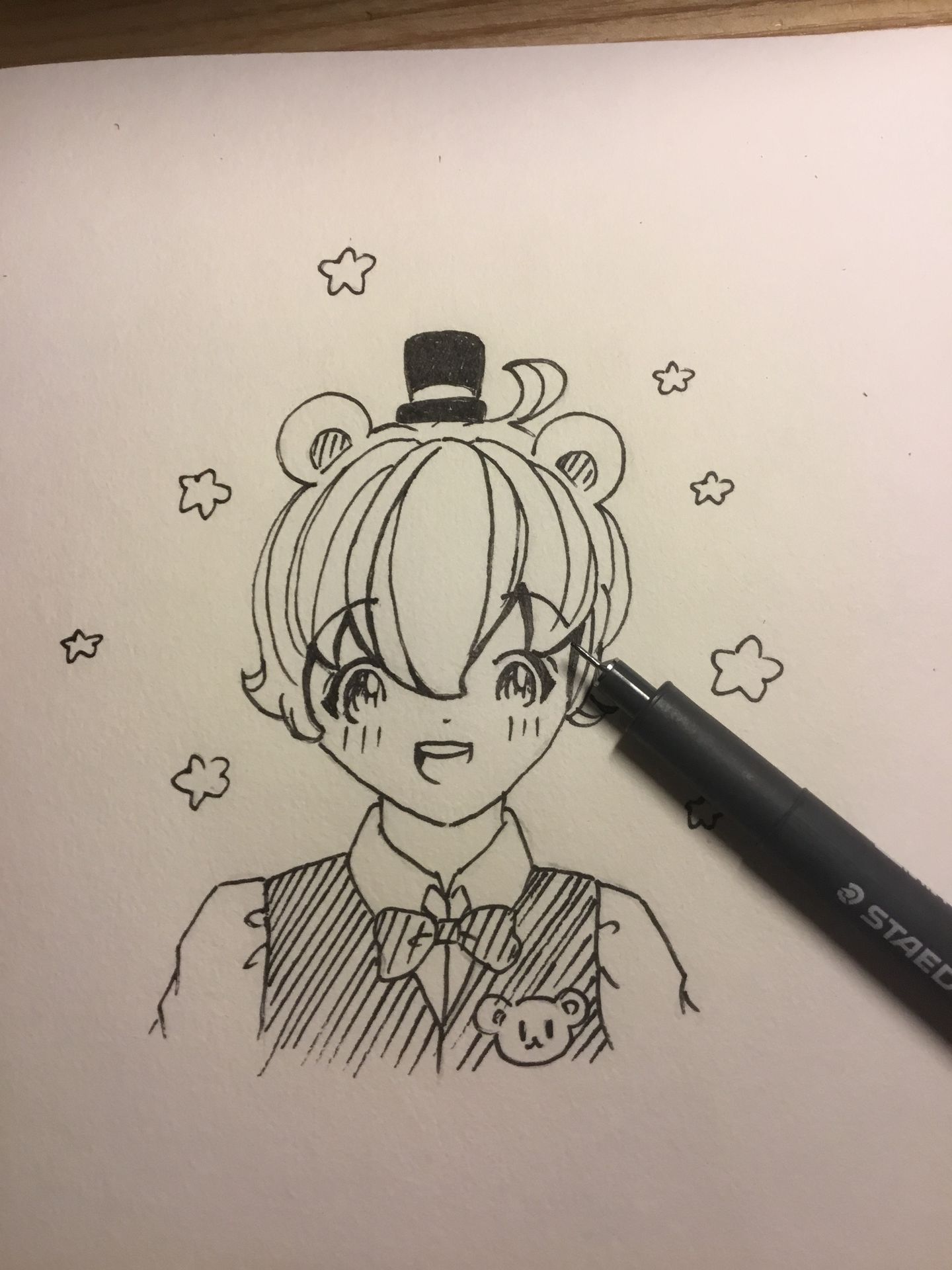 Tớ thêm sọc vào mũ,áo,nơ,phần tai bên trong và mắt.