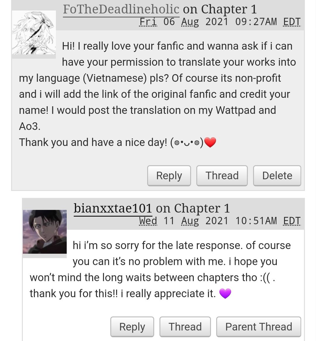 Vì mình đang tranh thủ thời gian rảnh rỗi cống hiến cho OTP nên đừng hỏi sao mình hăng máu đăng lắm fic z haha 🔥 Nếu được thì mình rất thích đọc comment của mọi người về tình tiết truyện đó 🥰