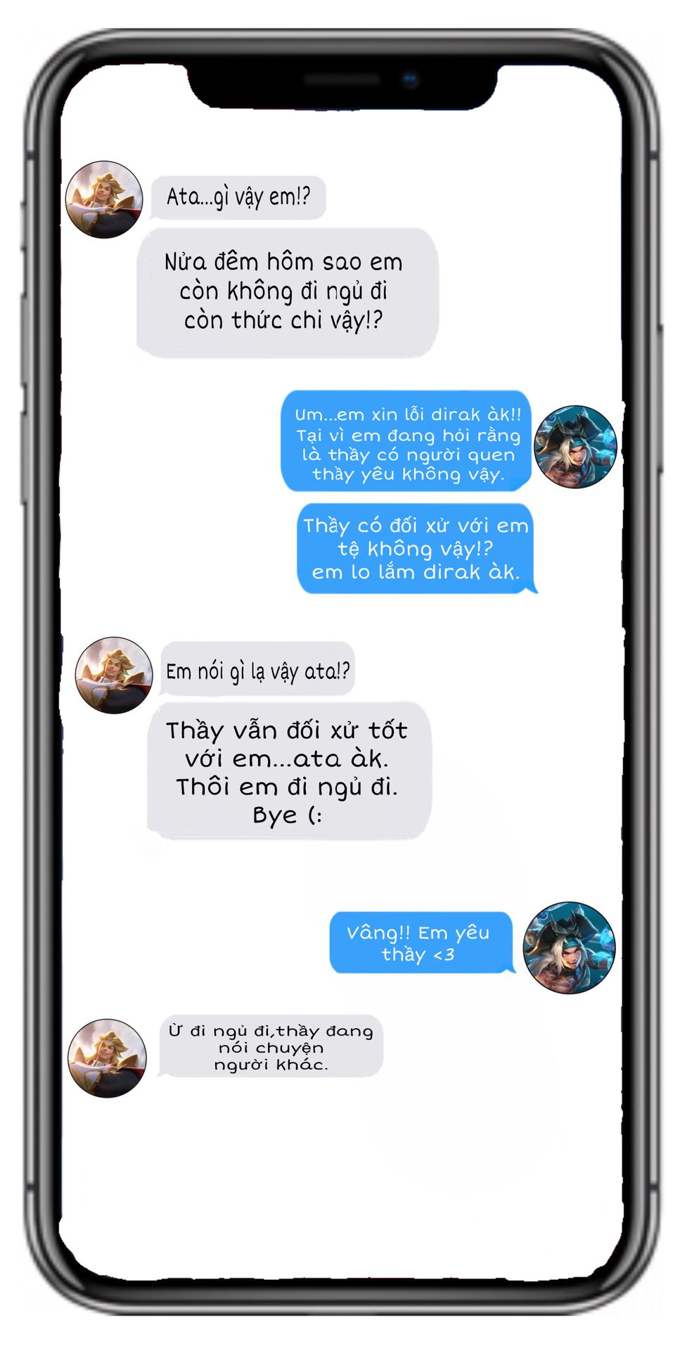 Ata thì nằm trên giường nhắn tin với Dirak dùng iphone xịn.