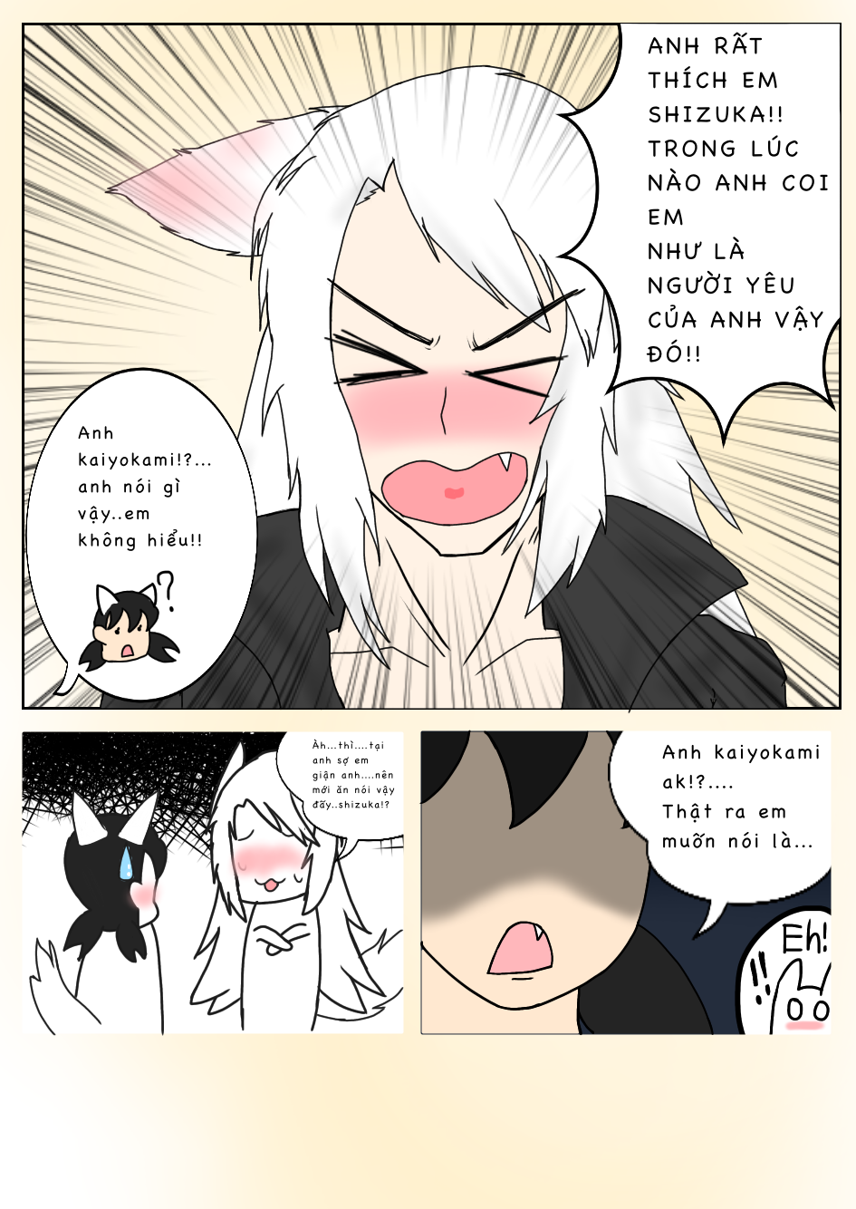 Shizuka~...em thiệt là dễ thương quá đi rồi đây.(Kaiyokami nắm tay shizuka đưa lên má của ảnh)