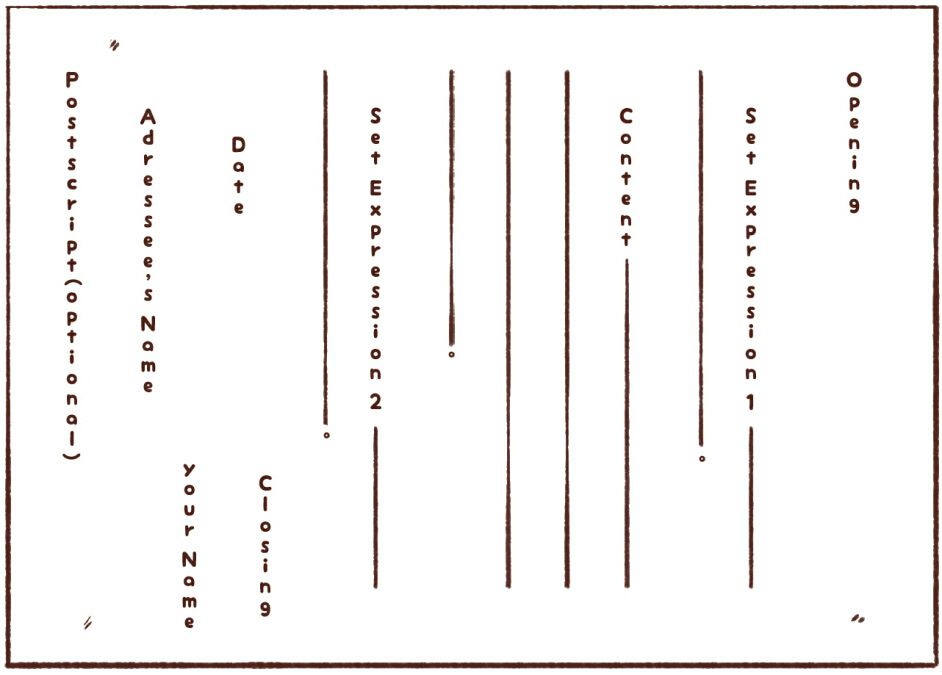-Set Expression #1 ( Lời tựa mở đầu ): Ngay sau phần người nhận là phần đặt lời tựa. Đây thường là những câu định trước liên quan đến thời tiết, sức khỏe, v.v… Cái này ta sẽ nói kĩ hơn ở phần sau.