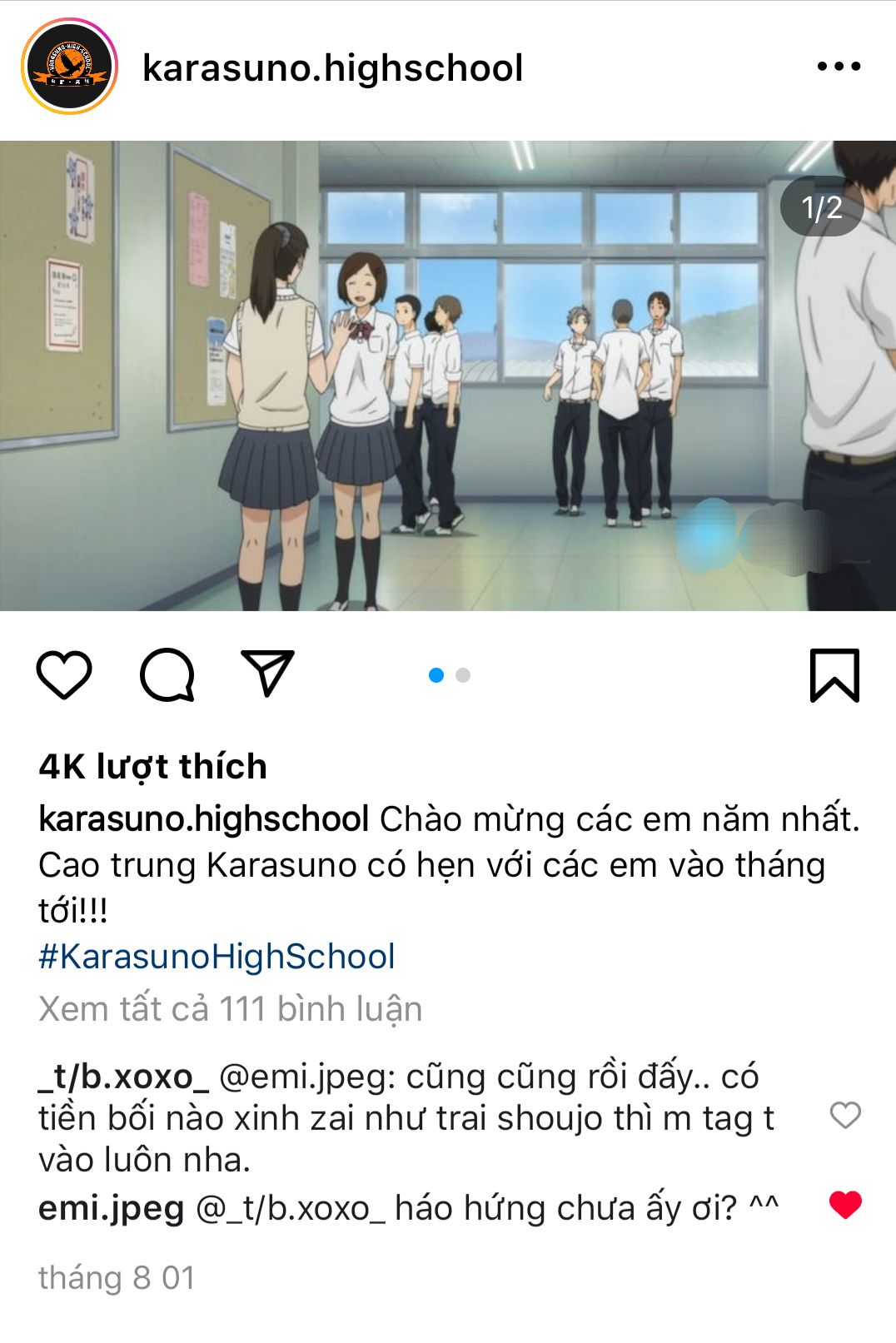 hôm trước một người bạn giới thiệu cho em lớp học thêm tiếng Anh của giáo viên nọ, cũng kha khá học sinh Karasuno theo học.
