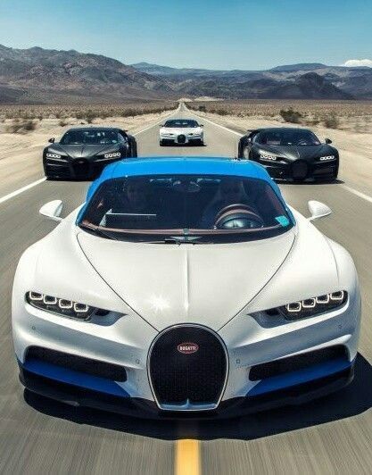 Chiếc xe Bugatti chiron màu trắng lướt trong gió.