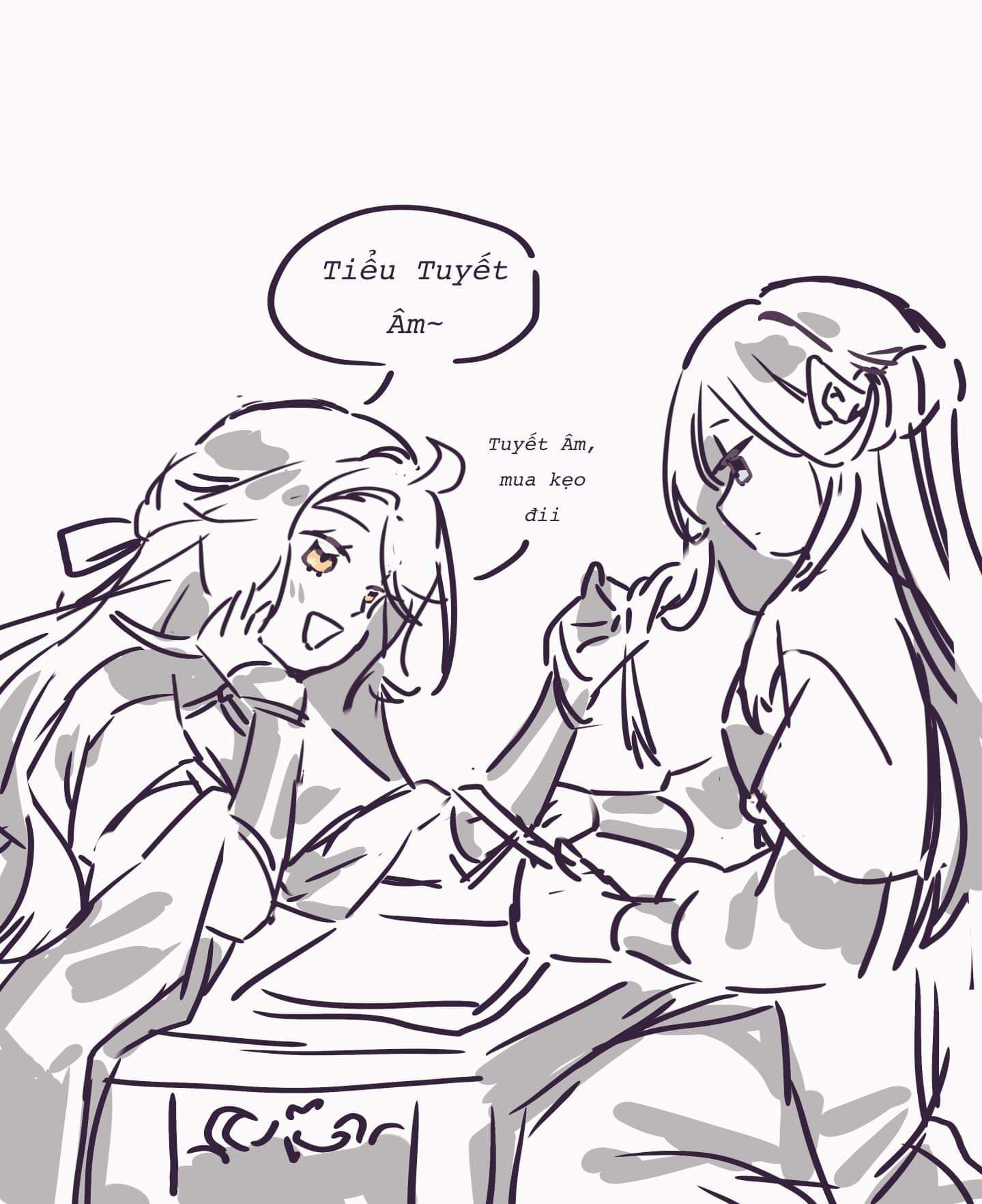 Đó là có một đọc giả trong đêm tối âm thầm tặng hai bức art khiến cho tui chạy vòng quanh 350 vòng trong đêm. Lần đầu tiên Hạ Thiên Thu cùng Hàn Tuyết Âm có một fan art riêng. Không phải là hình trôi nổi trên mạng. Mà là FAN ART RIÊNG!