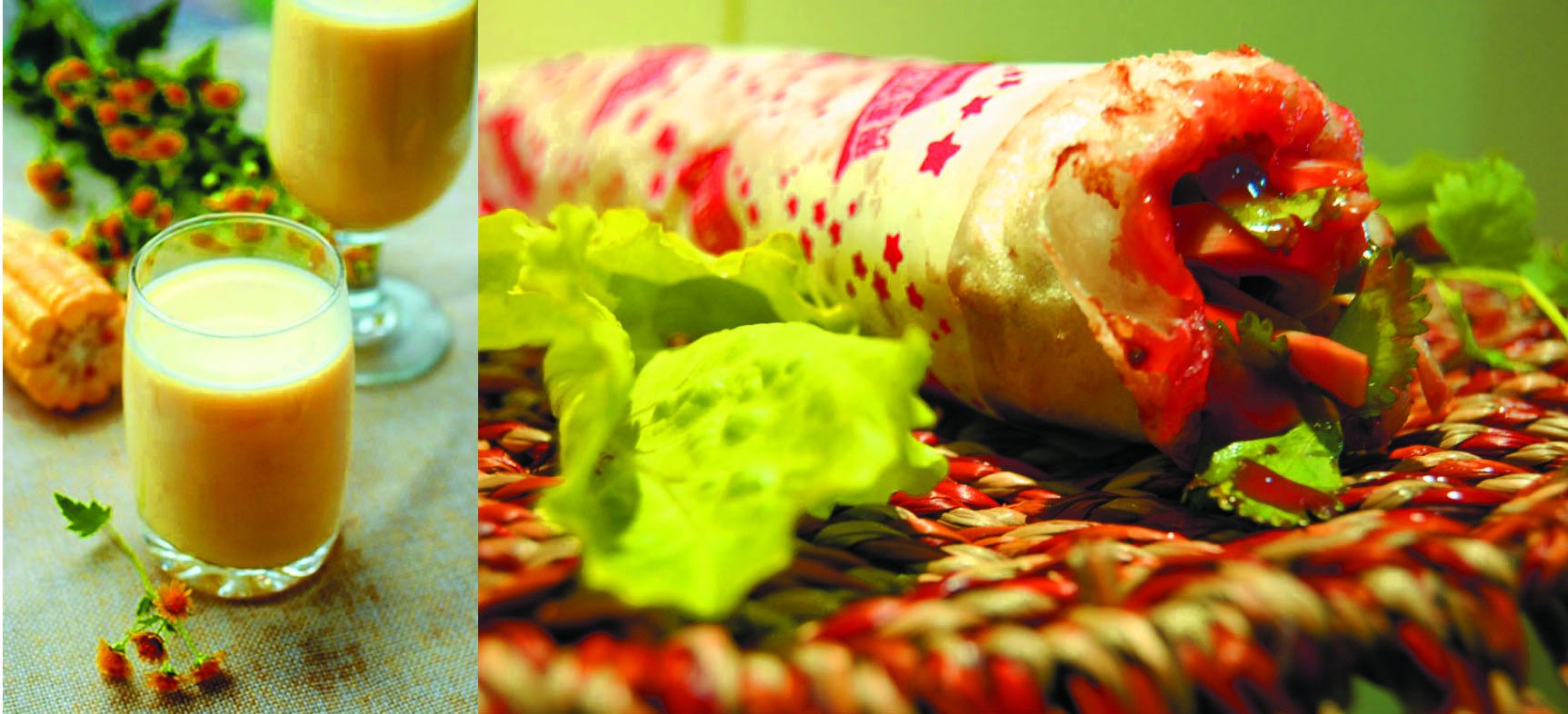 "Sữa bắp cùng thịt muối cuốn." Lương Hiểu hỏi để lần sau biết còn tránh.