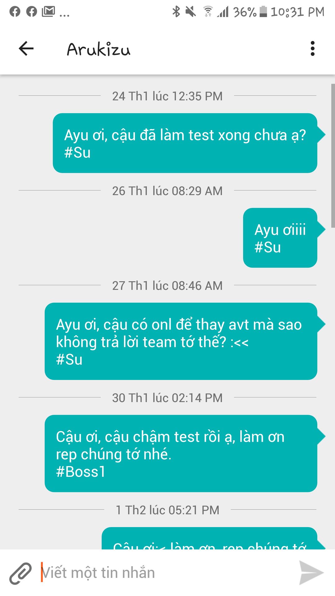 Ngày 25/1, một mem nhỏ của Team tớ vô tình nhắc cậu về việc trả test muộn trên wall, và sao? Cậu đã xoá lời nhắc đó.
