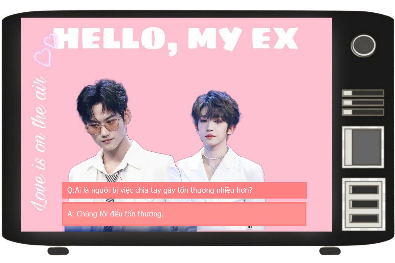 " Vâng, lần đầu tiên có cặp đôi đến câu hỏi thứ 6 rồi mà ekip vẫn không lườn trước được là phản ứng của người nào sẽ mãnh liệt hơn để tia cam cho kịp, nên nếu quý vị khán giả xem live trực tiếp hãy thông cảm cho ekip của Hello, My Ex lần này nếu như chúng tôi bắt không kịp. Những khoảnh khắc bắt không kịp khi live chúng tôi sẽ update trong fanpage chương trình."