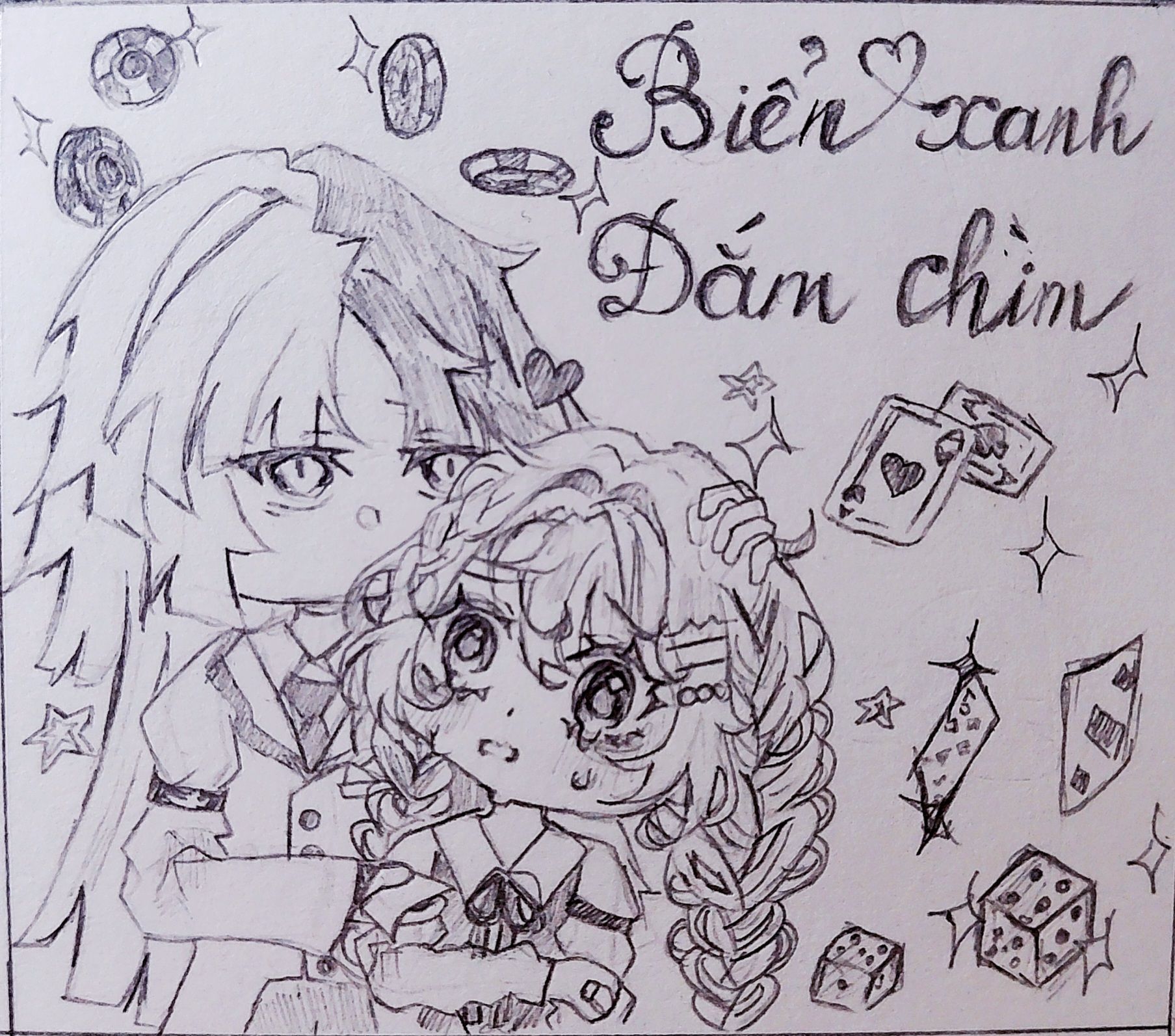 (Nét mình thì thích thêm lấp la lấp lánh, màu mè hoa lá hẹ cho tranh nên nhìn có vẻ hơi rối.)