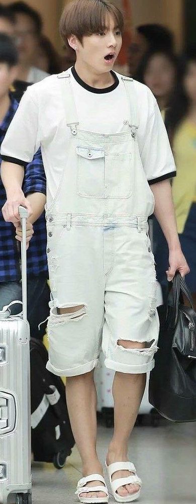 Mở cửa ra bạn gặp gặp một Jungkook không thể nào đáng yêu hơn. Hôm nay anh ấy mặc yếm cơ đấy! Lại còn chơi nguyên một set trắng luôn mới chết người! Trông kìa! Bộ dạng anh ấy bây giờ không phải là đang buồn ngủ hay sao?