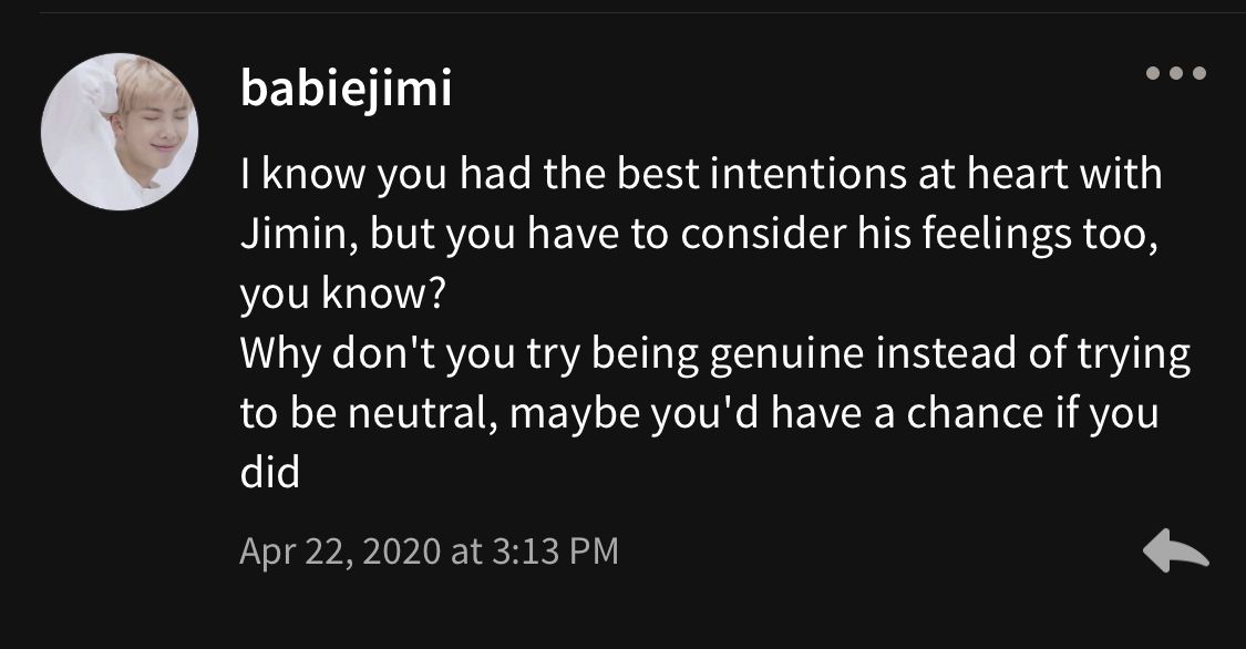 If you were in Jimin's shoes, would you ever be able to come to an understanding of his character?