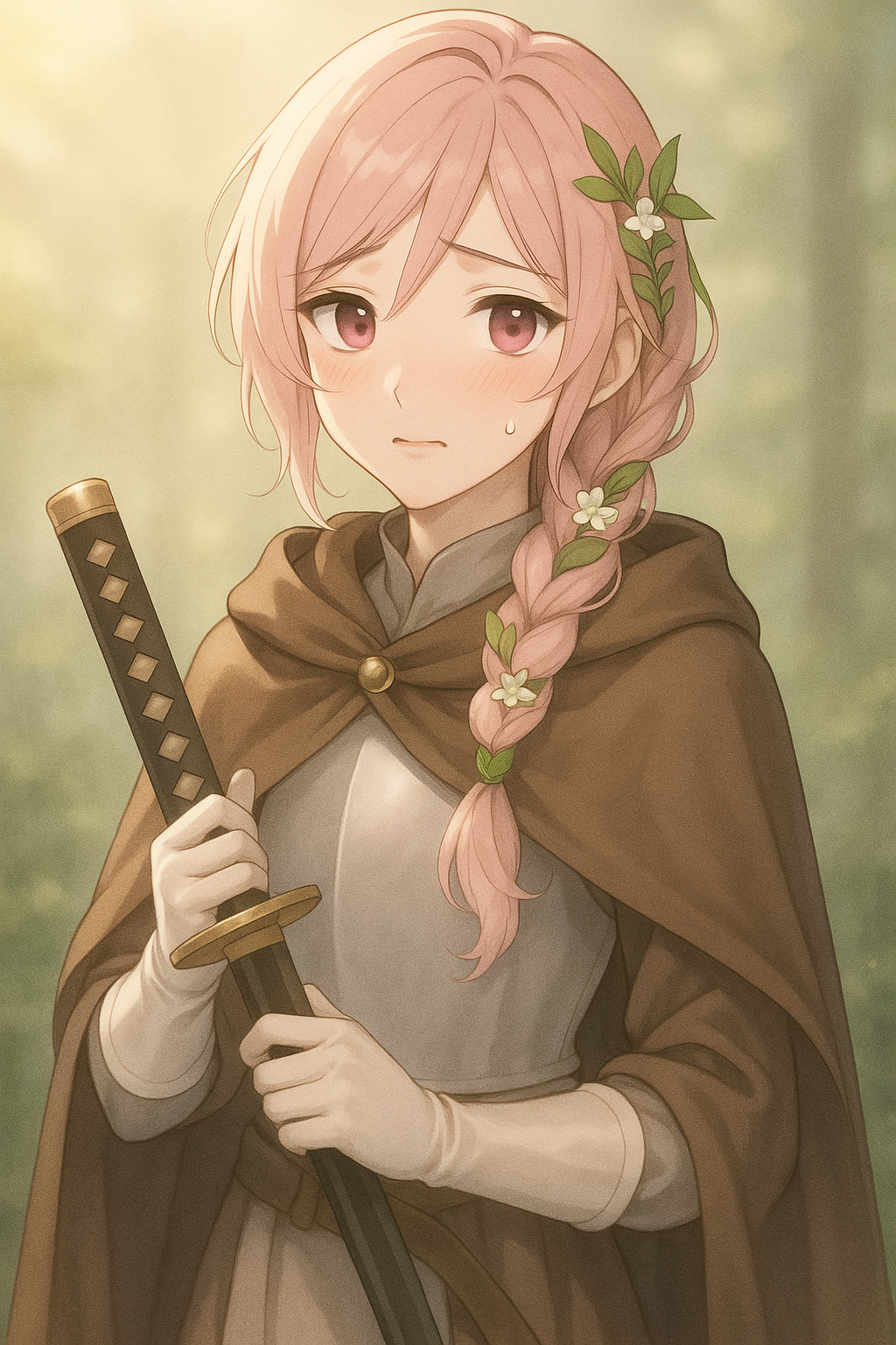 Tại một nơi khác trong lâu đài, trong căn phòng tĩnh lặng chỉ nghe thấy tiếng gió khẽ lùa qua khung cửa sổ khép hờ, một người đàn ông đang ngồi lặng lẽ trên mép giường. Mái tóc dài màu hồng nhạt của anh được tết gọn sang một bên, vài lọn tóc mềm mại buông hờ theo đường cong gò má, khẽ lay động theo hơi thở.