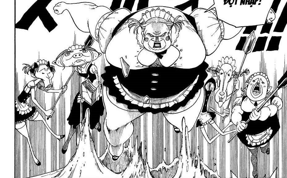 Từ đằng sau 1 đống Gorillas ( quái vật ) đằng sau tôi chui lên . À không , thực ra chúng là hầu gái của tên béo kia .