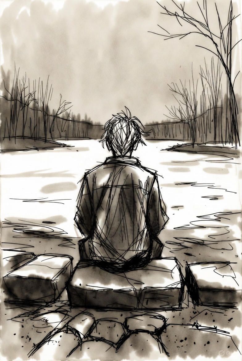Ánh sáng mờ của buổi hoàng hôn phủ lên gương mặt cô một lớp màu nhạt. Đôi mắt trong veo, nhưng sâu thẳm như chứa một khoảng trống vô tận.