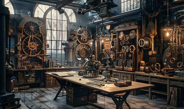 (*)Phong cách punk: là một phong cách thời trang thể hiện tinh thần nổi loạn, tự do và chống đối, với những đặc điểm nổi bật như trang phục rách rưới, màu sắc đen chủ đạo, và phụ kiện kim loại gai góc. [Không tìm được ảnh như trong miêu tả nên tôi tìm thì thấy kiểu Steampunk này khá hợp lý nên để ảnh minh họa, nội thất chú trọng vào máy móc các kiểu.]
