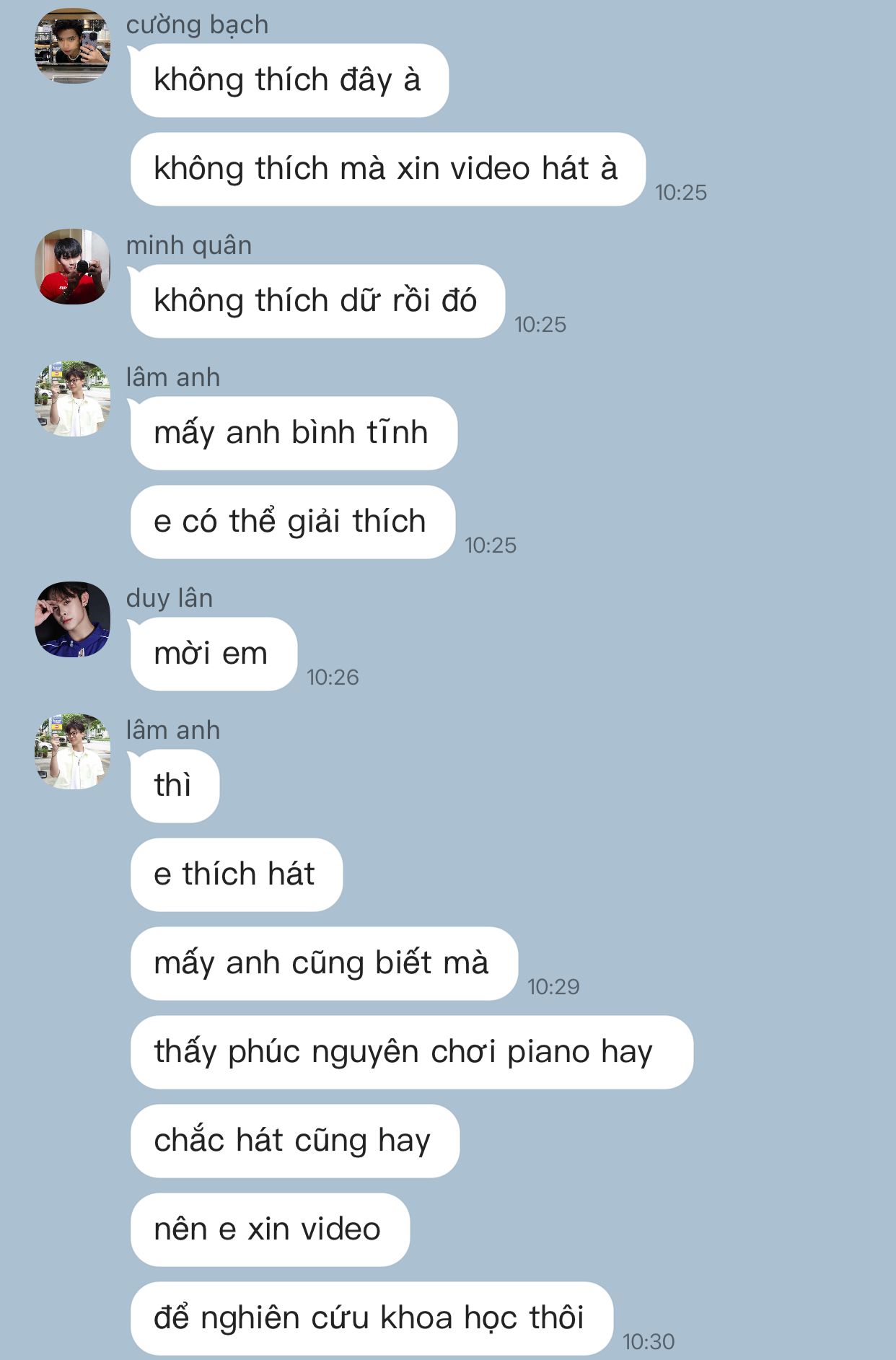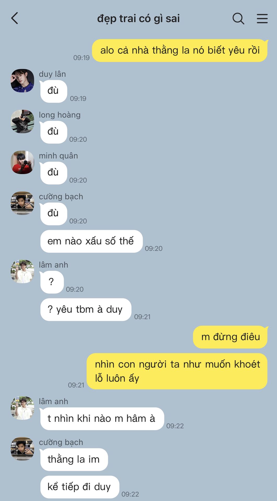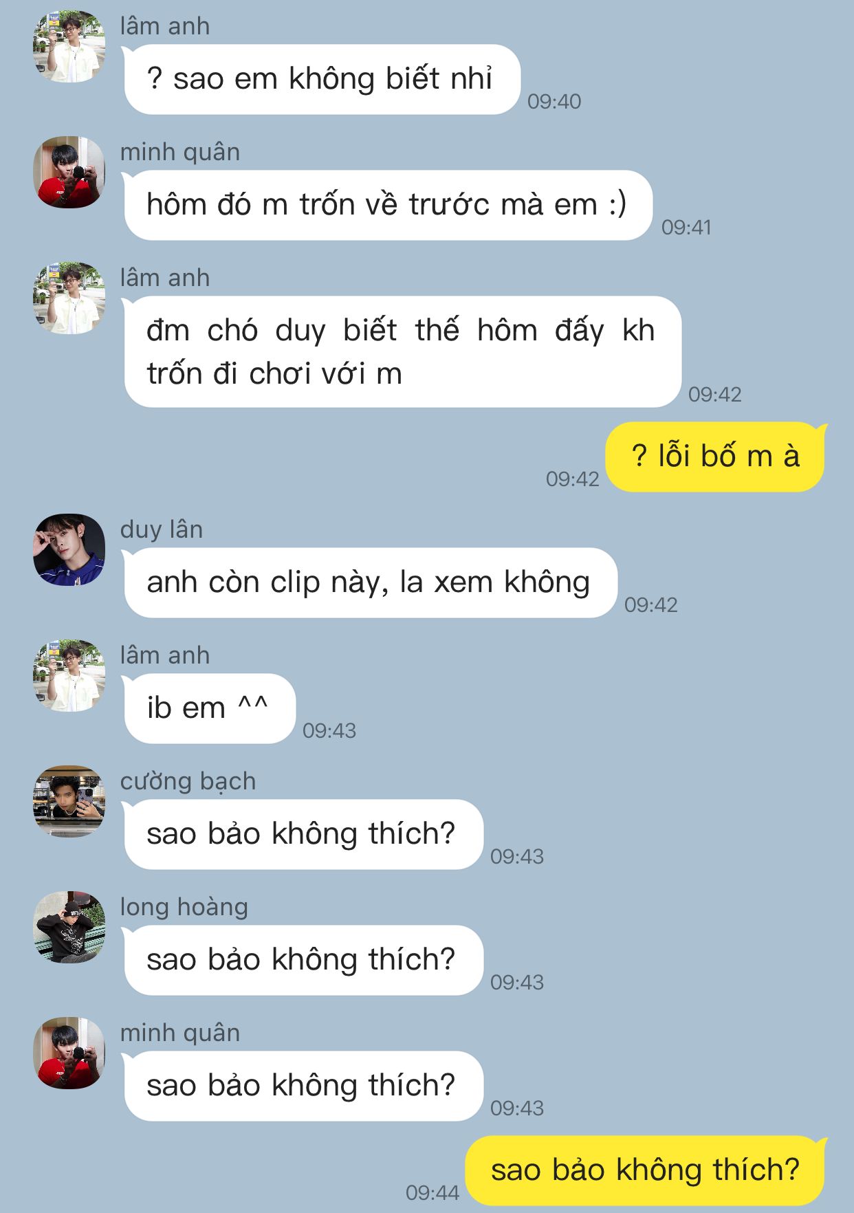tạm thời thì nhiêu đó thôi tại tui lười ^^ nào rảnh sẽ set bối cảnh, profile cho mấy đứa