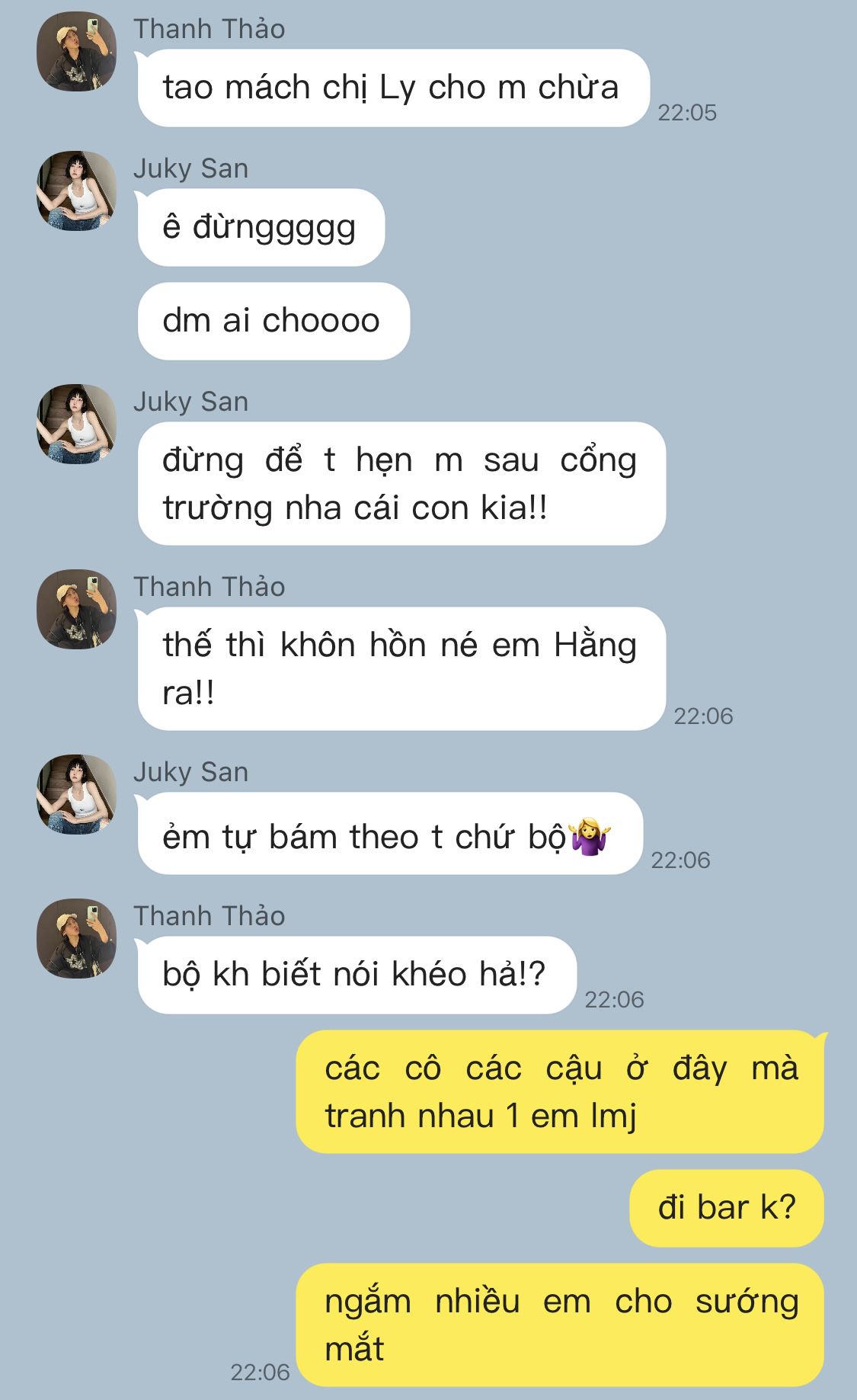 "Có chị giới thiệu em mới biết chỗ này mà, toàn gái xinh thôii."- Mỹ cười rồi nựng cằm 1 cô gái khiến cô ta ngại đỏ hết mặt.