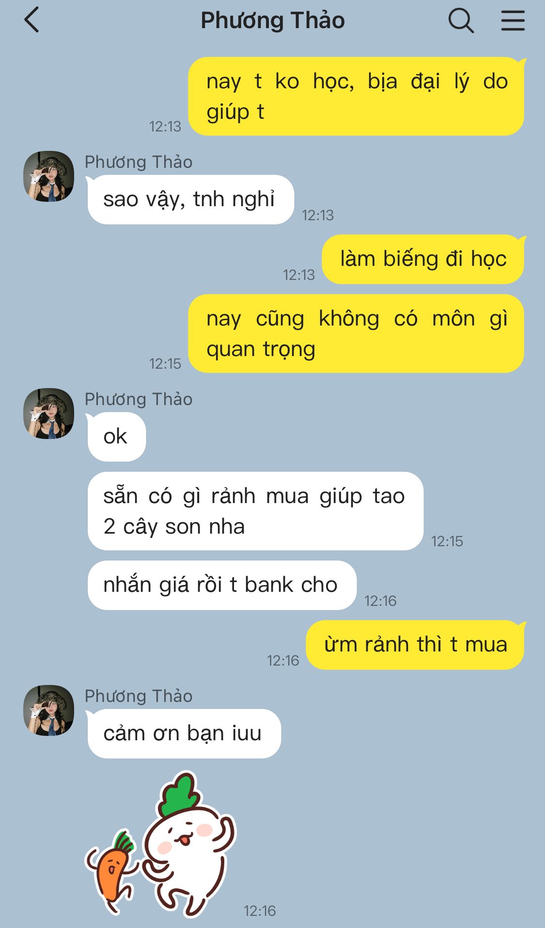 "Mình.. Mình không biết luôn á." Phương Lan tỏ ra ngạc nhiên.