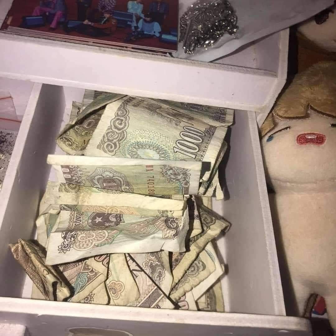 Tiền tao để trong túi hello kitty màu hồng đó😭