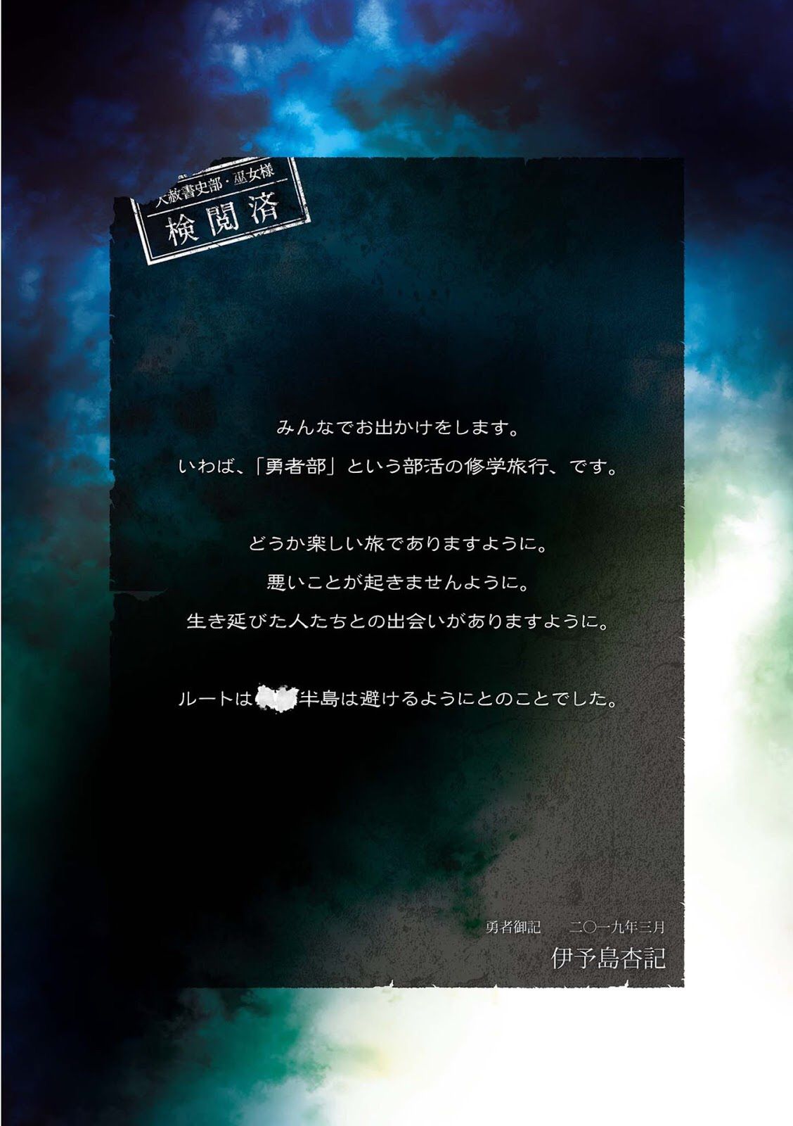 Wakaba nhận ra có một cuốn sổ tay trên sàn nhà. Cô nhặt nó lên và nhìn vào bên trong. Đó là cuốn nhật kí của một người đã trốn trong khu thương mại dưới lòng đất này.