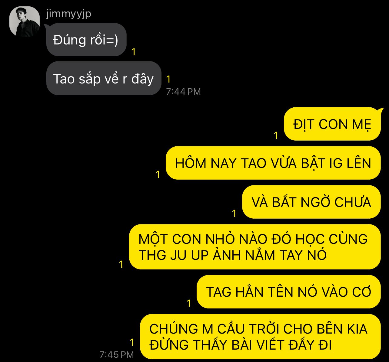 markjrtn: Tao là Mark Jiruntanin,là NGƯỜI YÊU của NGƯỜI MÀ MÀY NẮM TAY VÀ UP LÊN TRÊN ĐÂY, 4 tháng qua mày ăn ké đồ ăn tao gửi cho ảnh thế nào? Ngon không, tao nghĩ là có nhỉ? Tao không dài dòng,mày muốn thì tìm tao giải quyết,còn Junior Panachai nếu nó chọn mày thì ok,tao sẽ chúc cả hai chúng mày sống ĐÉO HẠNH PHÚC.Mày đào được của nó bao nhiêu tiền rồi? Mấy nay trong bóng tối nên ức quá máu liều hơn cả máu não up luôn à? Tao cười lủng Thái Lan rồi mày ạ!