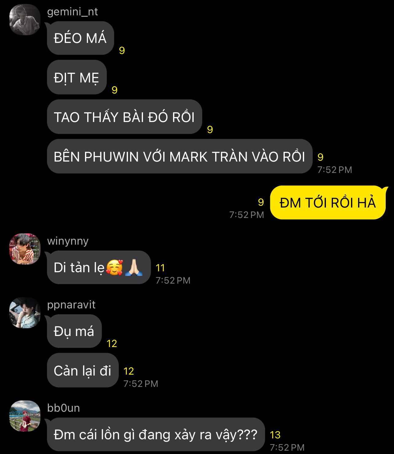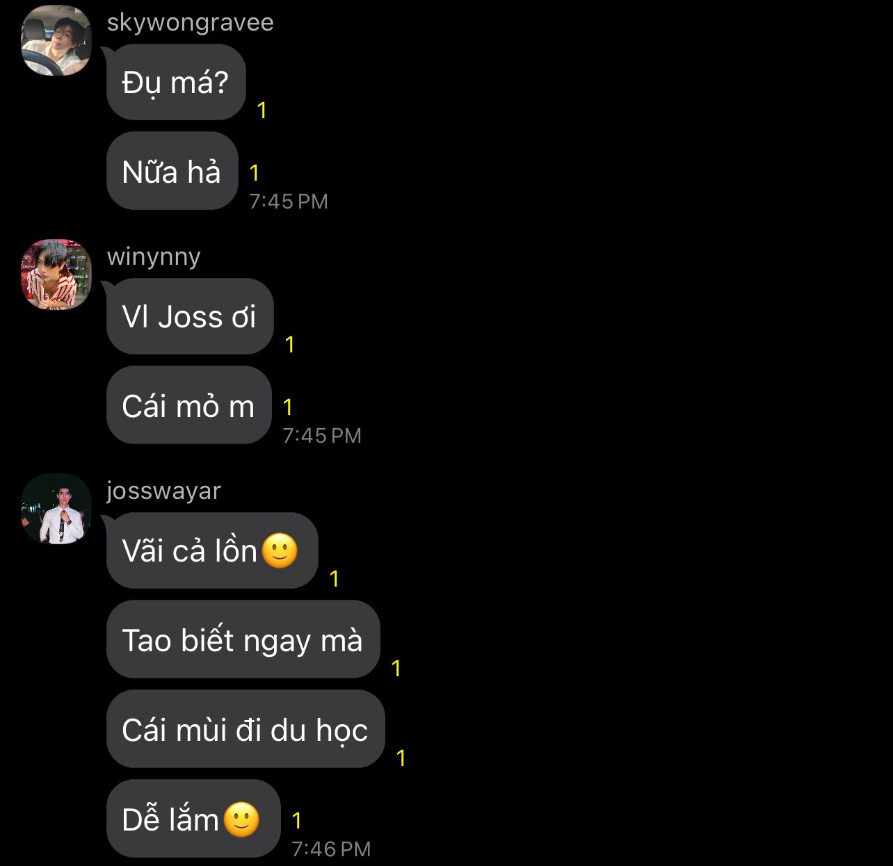 fourth.ig: tao chưa gặp mày và cũng đéo muốn gặp,nhưng tao nghĩ nếu bọn tao gặp mày thì cái sụn mũi mày sẽ bay ra khỏi mũi mày như cách mày chui từ lỗ mẹ mày tới với thế giới này vậy🙂