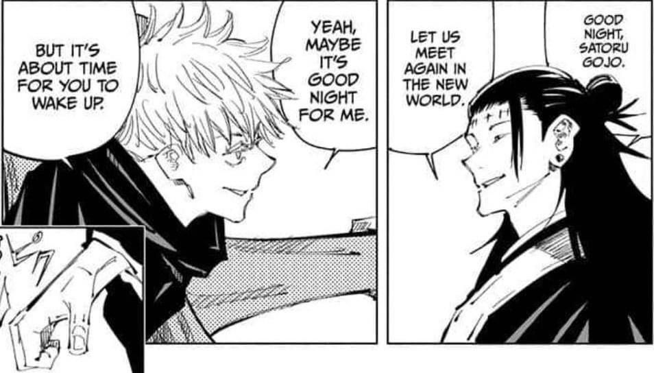 Khi Kenjaku chiếm được xác Suguru, hắn biết rõ Suguru đối với Satoru như thế nào và ngược lại, nên hắn mới biết, một phút gây xao nhãng đó hắn sẽ xuất hiện ra sao. Bóng hình đó, giọng nói đó, là tất cả khắc khoải của Satoru, nhưng có lẽ chính hắn cũng không nghĩ đến, Satoru ngay sau đó đã dễ dàng nhận ra hắn chỉ là kẻ giả mạo nhanh thế nào. Bởi vì, thứ cậu dùng để cảm nhận con người của Suguru là con tim, là sâu tận trong lòng, không phải là chú lực; thứ tồn tại giữa họ mạnh hơn thế nhiều, đủ mạnh để cậu sẵn sàng chối bỏ lục nhãn chỉ để tin vào cảm xúc cá nhân.