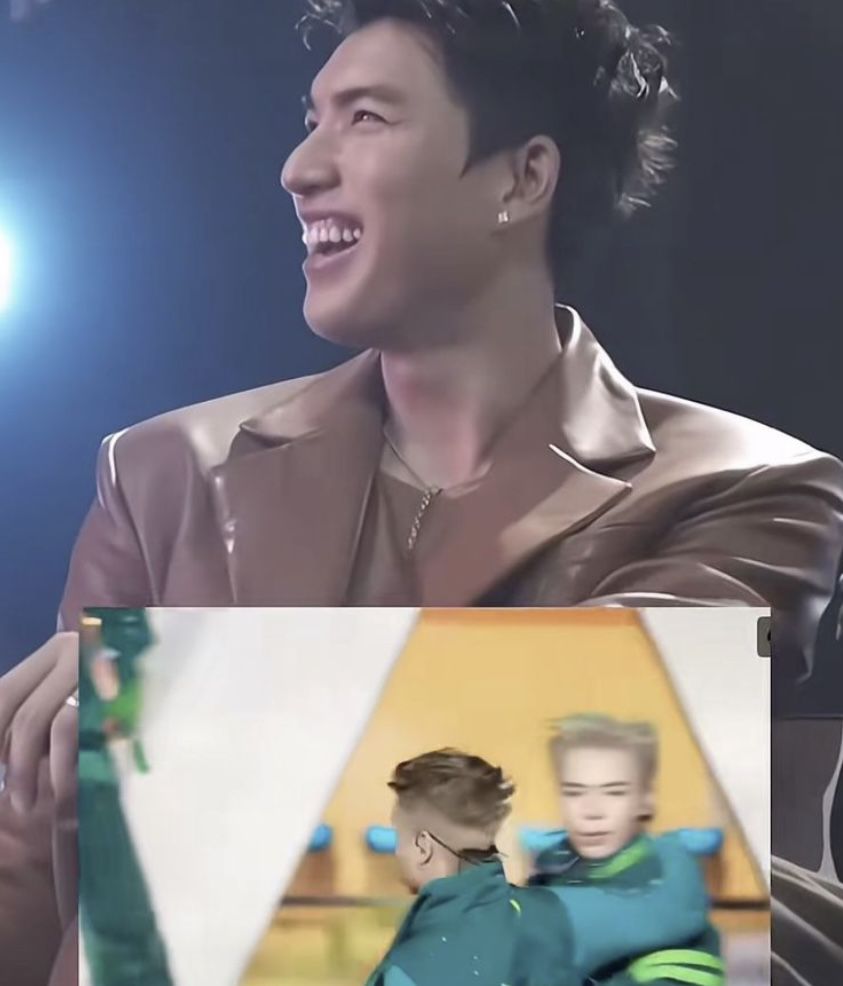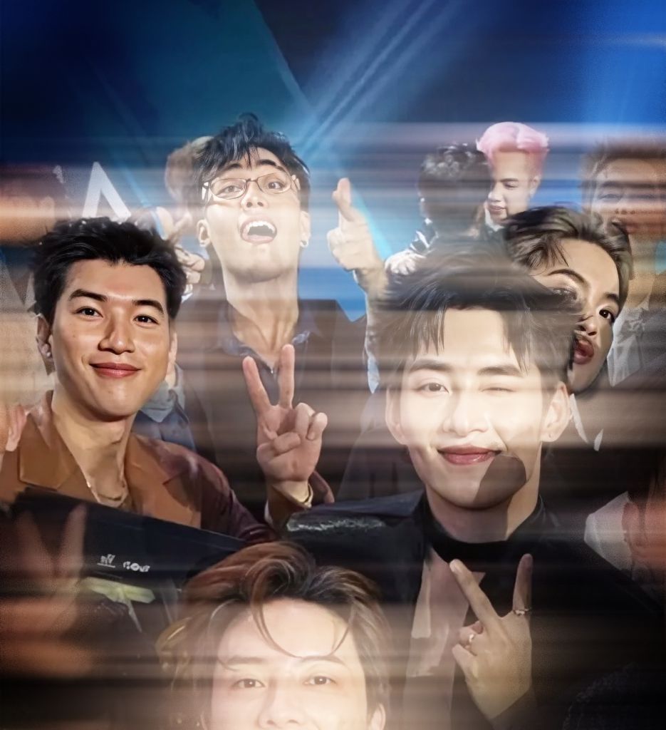 minh hiếu theo dõi màn trình diễn trên màn hình led, người nọ mặc trang phục màu xanh aqua nổi bật và gắn sticker nhiều kiểu dáng trên đôi gò má hồng, nhìn vừa ưng mắt còn vô cùng đáng yêu.