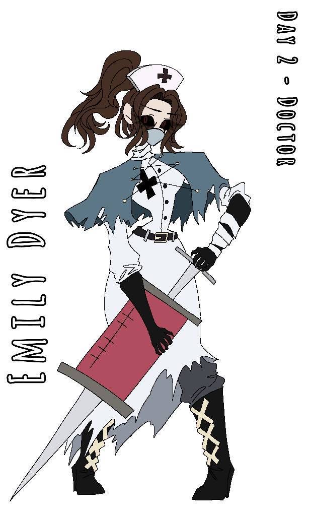 Lúc này cả 3 nhìn về phía trước thì nhìn thấy 1 cô y tá với 1 chiếc mũi tiêm khổng lồ đủ sức đâm qua da thịt của con người cùng với đôi mắt đỏ như máu và nhìn thấy thì cũng biết đó là emily nhưng là bản thợ săn thì cô ấy nói