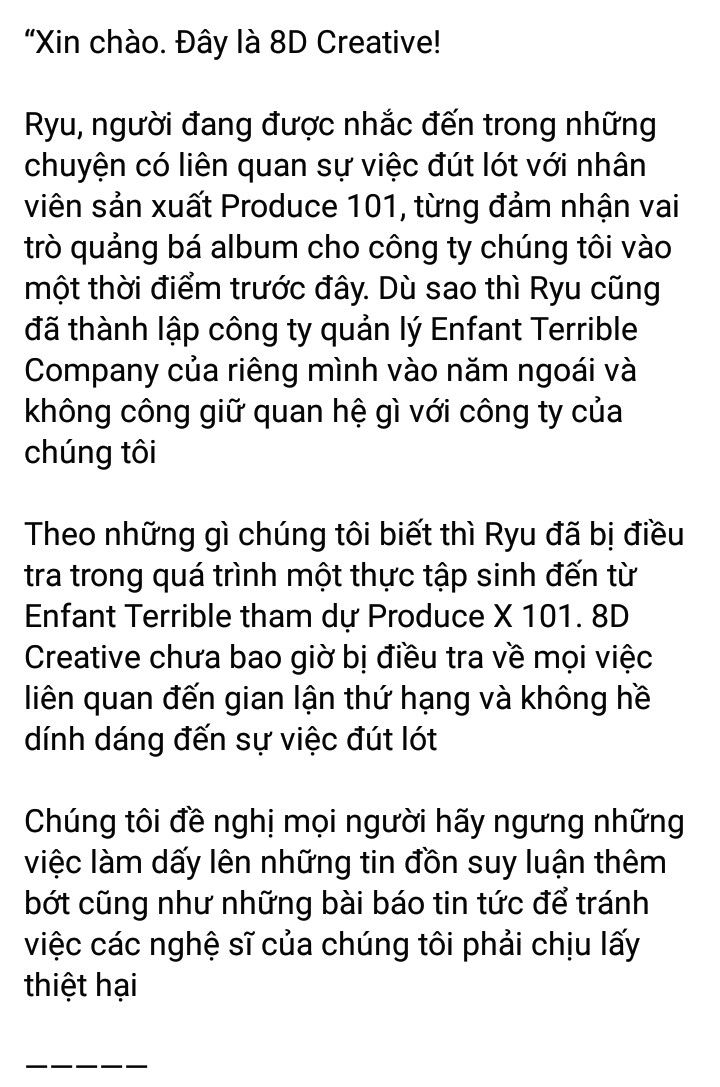 Bản dịch full thông báo chính thức từ 8D Creative