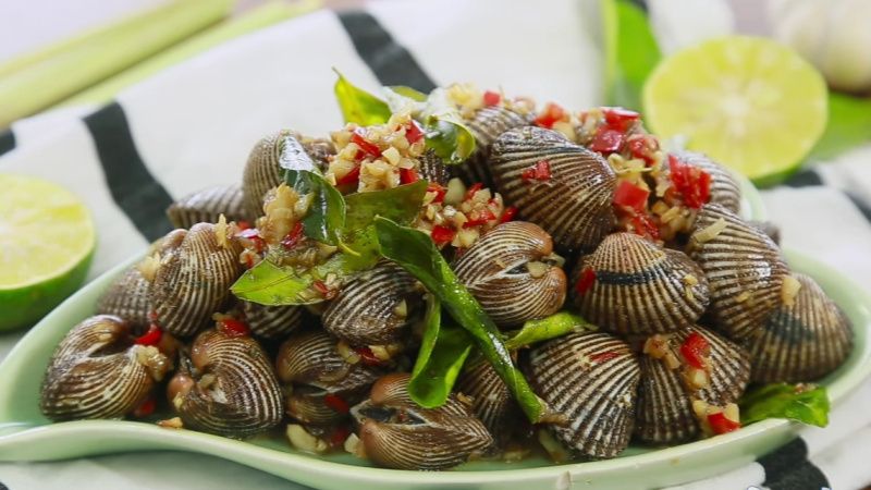 Sò Huyết Xào Chanh Sả.
