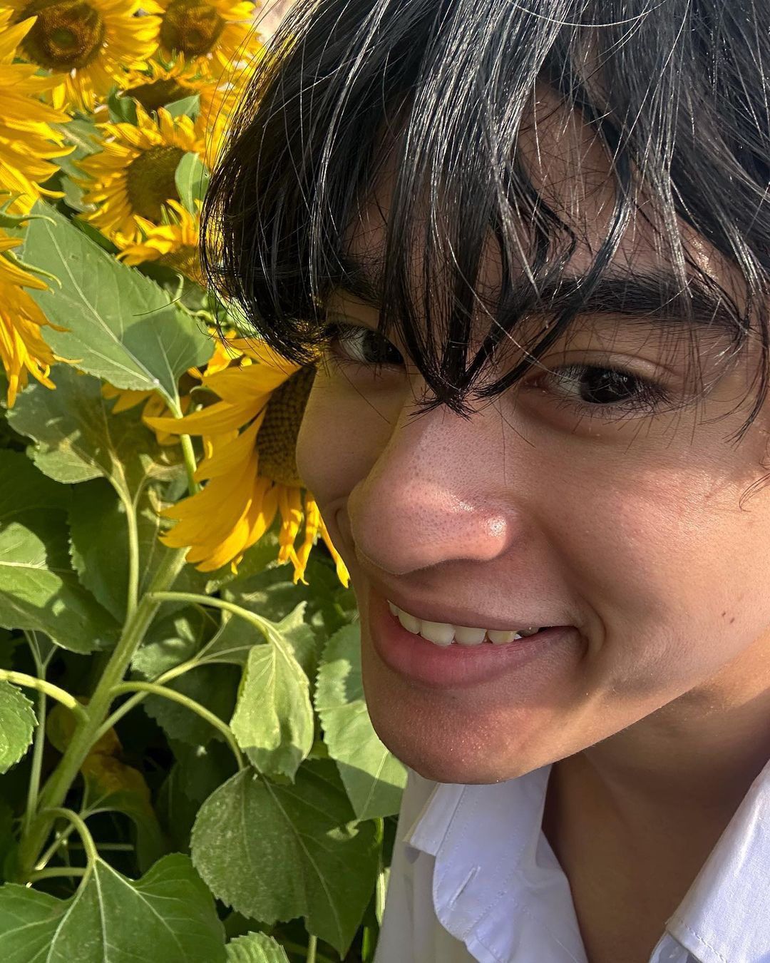 Hình ảnh Barcode lọt thỏm trong vườn hoa hướng dương mà Jeff đã trúng tiếng sét ái tình (góc nhìn Jeff sẽ khác nên là tương đối thôi :v tui tưởng tượng để tả thôi):