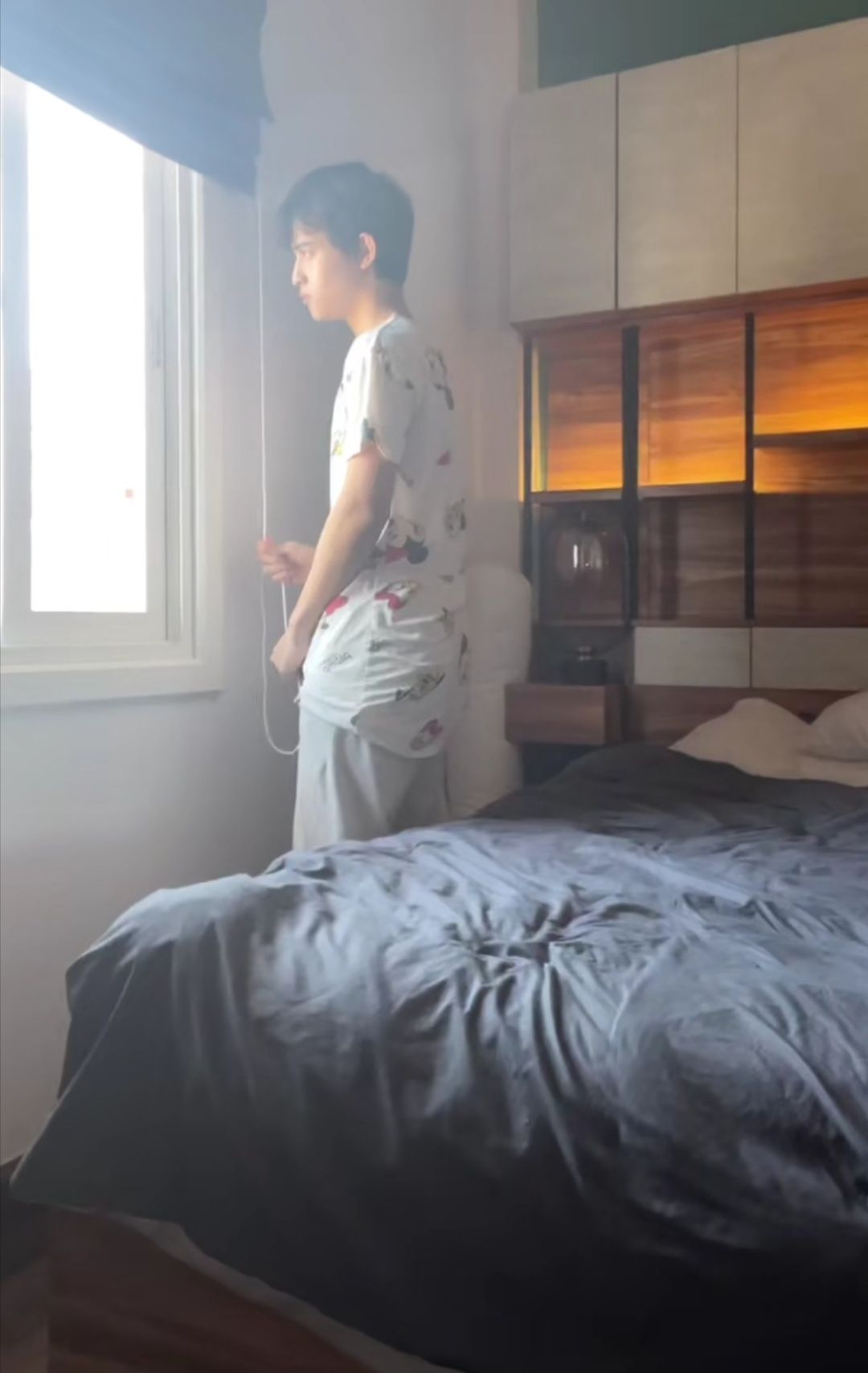 Hình ảnh Barcode kéo rèm cửa nhưng không đuổi được cơn buồn ngủ đi vì tối qua thức trắng đêm: