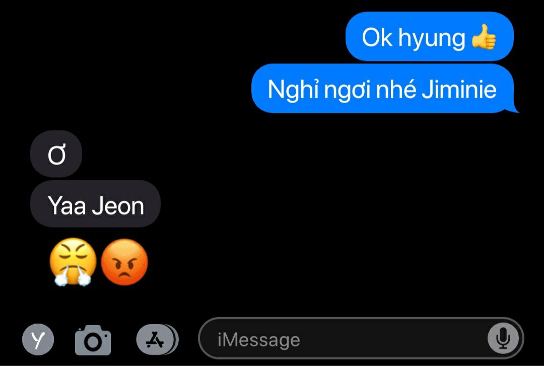 Jimin chỉ lặng lẽ xoa đầu cậu chàng rồi vỗ nhẹ lưng.