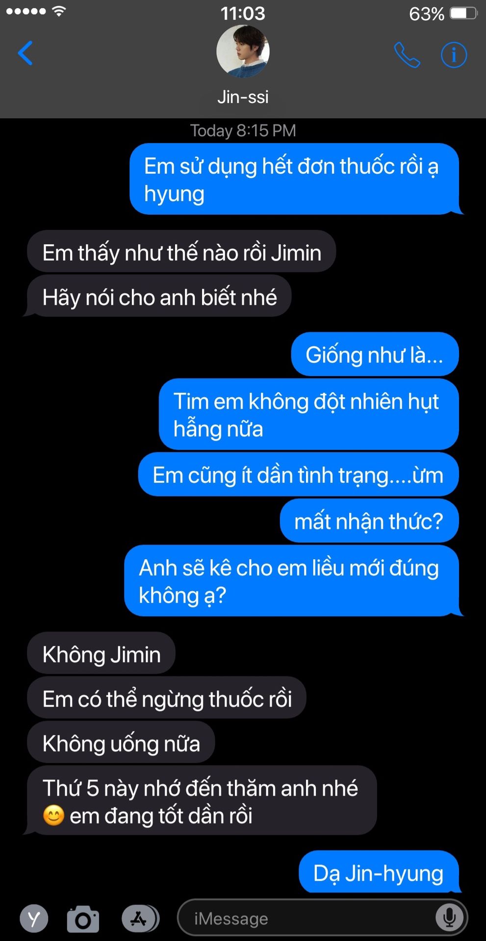 "Không sao hyung, thường ngày này tâm trạng em sẽ không tốt. Nhưng cảm ơn anh đã đến thăm em."
