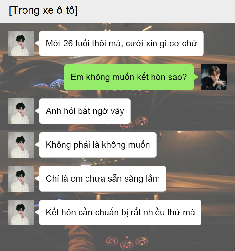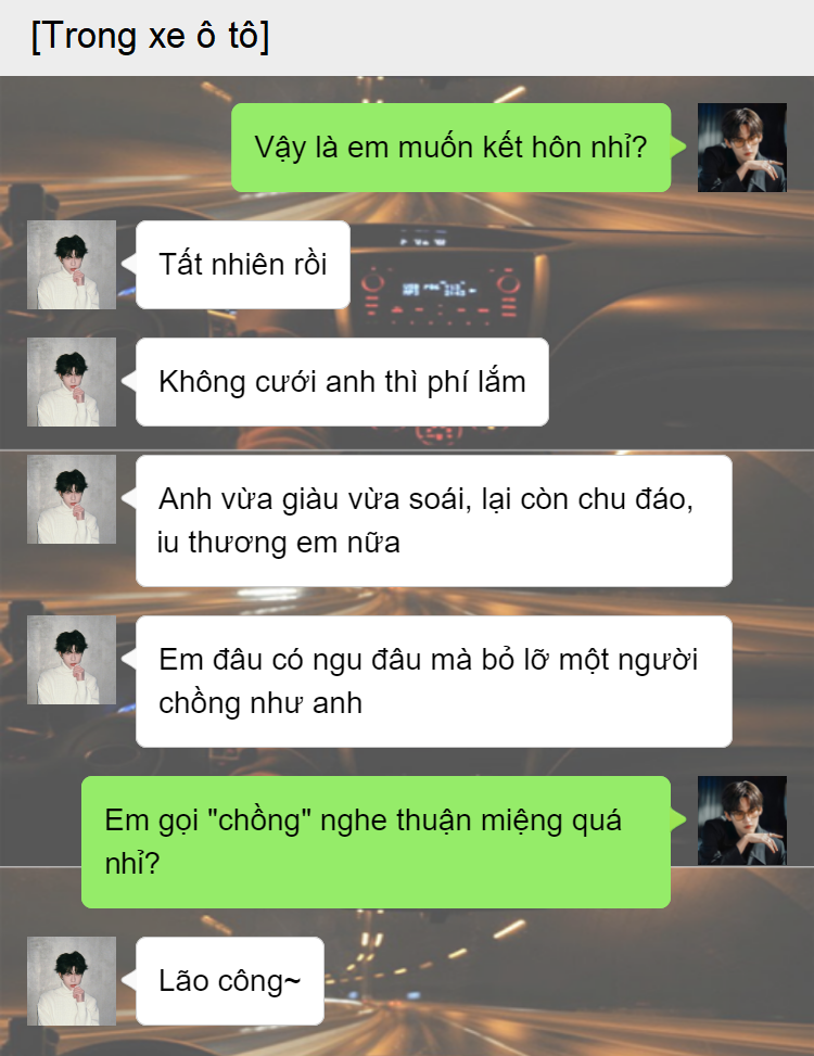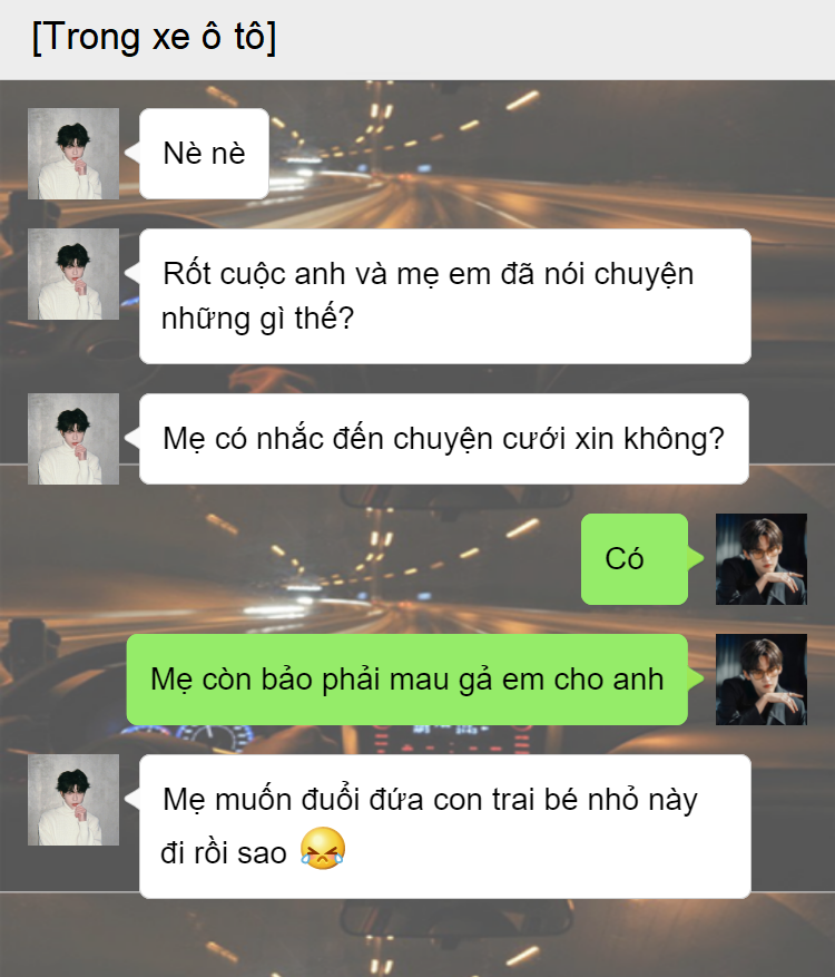 Pic nào mà có background thì đó là cuộc đối thoại nha.