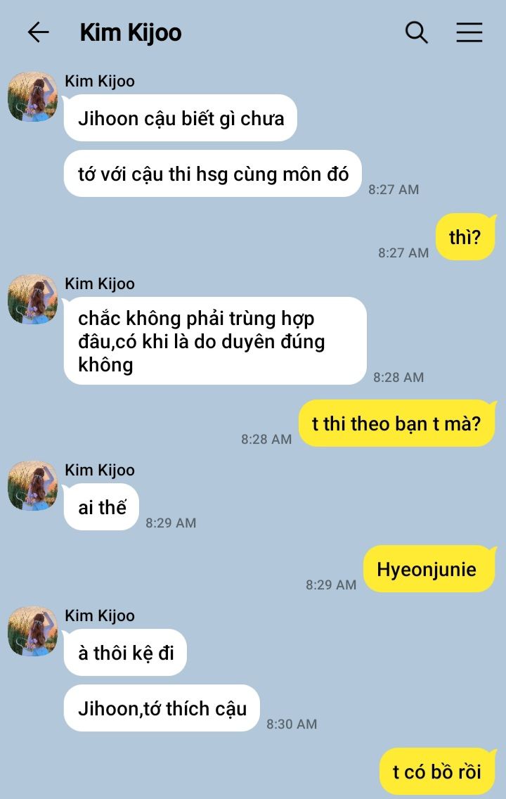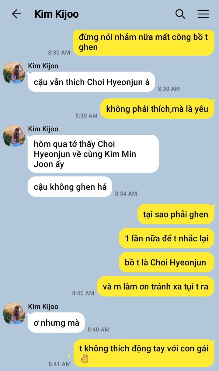 "Thôi mệt quá,nói nhiều làm gì.Viết bản tường trình hết sự việc ra.Kim Hyukkyu tự xem đi,t có việc rồi"