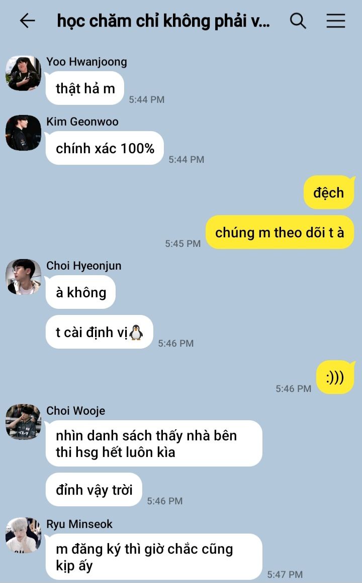"Không được,thả rồi em chạy mất thì sao.Tính nói chuyện nghiêm túc với em mà lại dính chưởng drama của tụi kia"-Lee Sanghyeok thản nhiên trả lời.